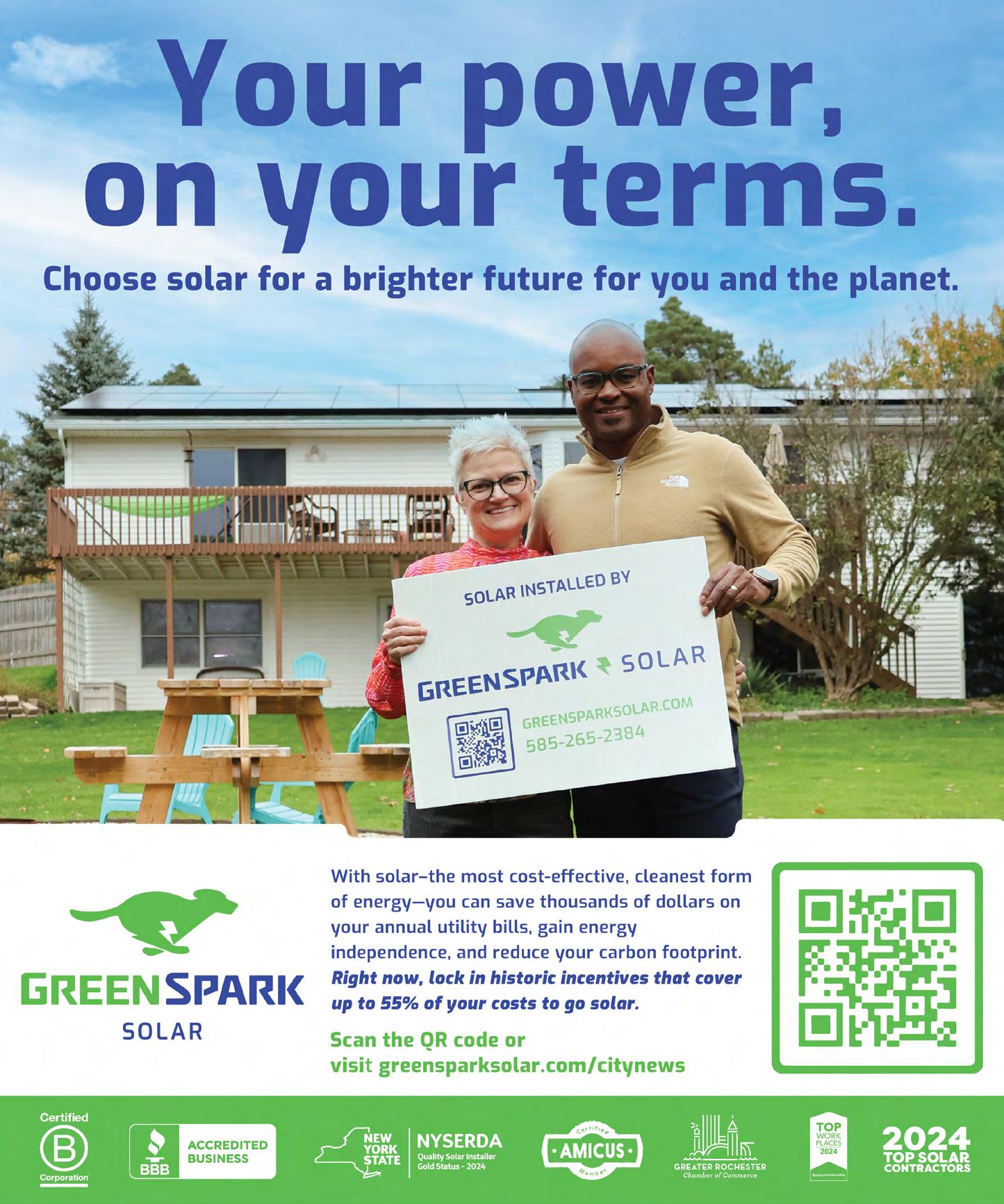 CITY (ISSN 1551-3262) is published monthly 12 times per year by Rochester Area Media Partners, a subsidiary of WXXI Public Broadcasting. Periodical postage paid at Rochester, NY (USPS 022-138). Address changes: CITY, 280 State Street, Rochester, NY 14614. Member of the Association of Alternative Newsmedia and the New York Press Association. Copyright by Rochester Area Media Partners LLC, 2023 - all rights reserved. No part of this publication may be reproduced or transmitted in any form or by any means, electronic or mechanical, photocopying, recording or by any information storage retrieval system without permission of the copyright owner.