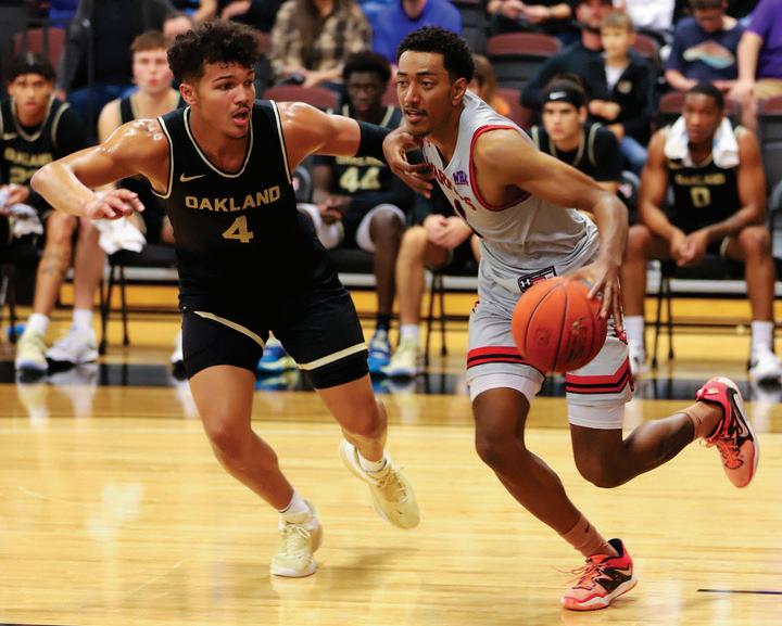 James Fisher dunks in a men’s basketball game against crosstown foe Oakland University.