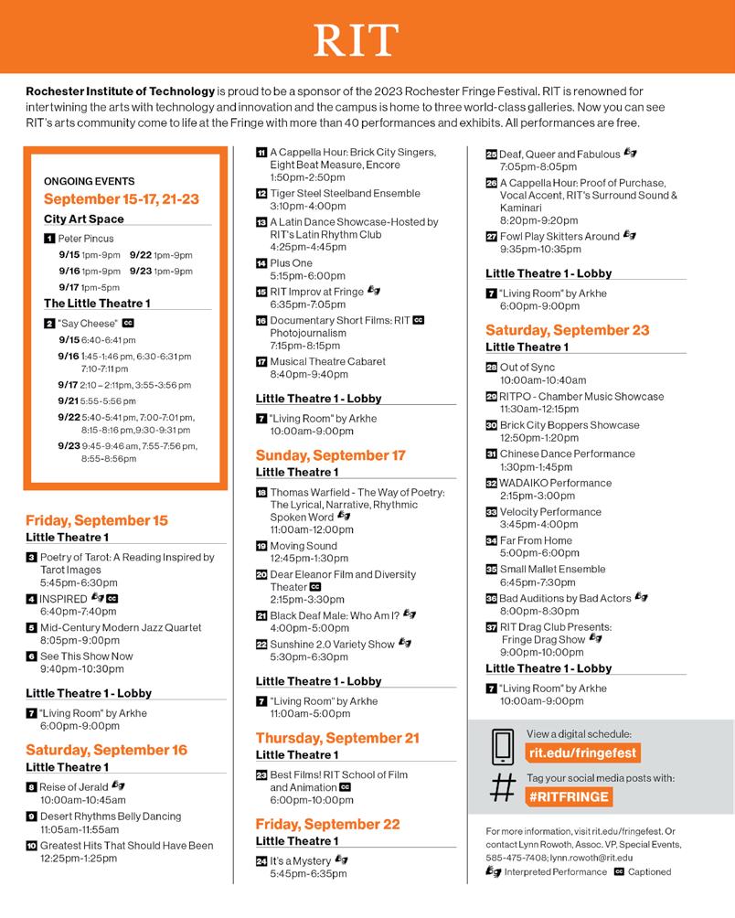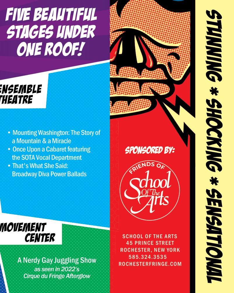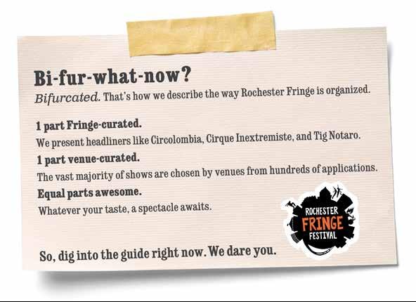 That’s just a sample of the 500 performances we are presenting at more than 30 venues in and around Rochester. The Rochester Fringe Festival has grown into one of the largest of the 300+ fringe festivals in the world and is in the top 3 in the U.S., and we’re just getting started.
