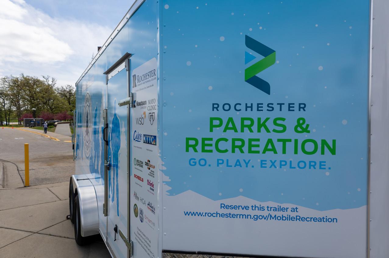 Last May, the Leadership Greater Rochester Class of 2022 was joined by Rochester Mayor Kim Norton at Rochester Community and Technical College for the reveal of their completed Community Impact Project, the Thrive Outside Winter Activities Trailer. This trailer is stocked with a variety of winter equipment such as sleds, snowshoes, broomball sets, igloo block makers, snowman kits, and a portable fire pit. The Thrive Outside Winter Activity Trailer is designed to promote the social, mental, and physical well-being of underserved communities in Rochester.