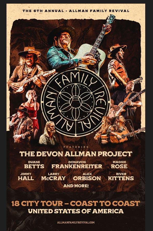 - Devon AllmanThe Sixth Annual Allman Family Revival, one of the year’s most anticipated Southern Roots/Rock tours celebrating the Life and Music of legendary Allman Brothers Band cofounder Greg Allman and led by Gregg’s son, Devon Allman, kicks off this year’s eighteen-city tour with a performance in the historic home base of the Allman Brothers, Macon, GA, at Macon City Auditorium, 415 First St., Saturday, November 26. Showtime: 8pm. Tickets: $35.-$348. Info: (478) 751-9152 or http:/ /www.maconcentreplex.org/auditorium/. Presented by Gibson Guitars and Flying Embers.