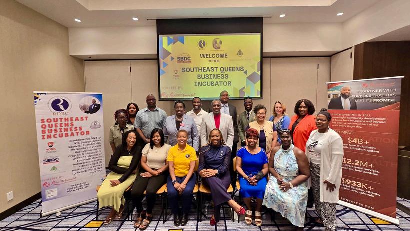 RDRC's Southeast Queens Business Incubator (SEQBI) program, is a free 8-week mostly virtual course, sponsored by Resorts World NYC, that empowers small business owners to grow and develop through opportunities for federal, state, and local funding. The program creates a pipeline of small businesses that are added to the Resorts World NYC and JFK Expansion ecosystems. The next Session starts on October 15 and ends December 17 . At the end of each Session, participants have the opportunity to compete in a pitch competition for a chance to win $5K, $4K, or $3K.