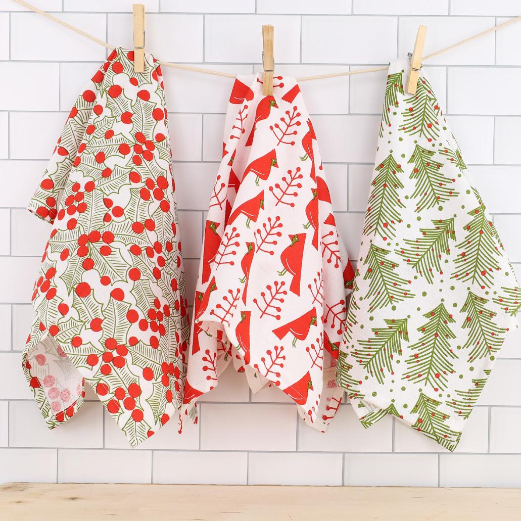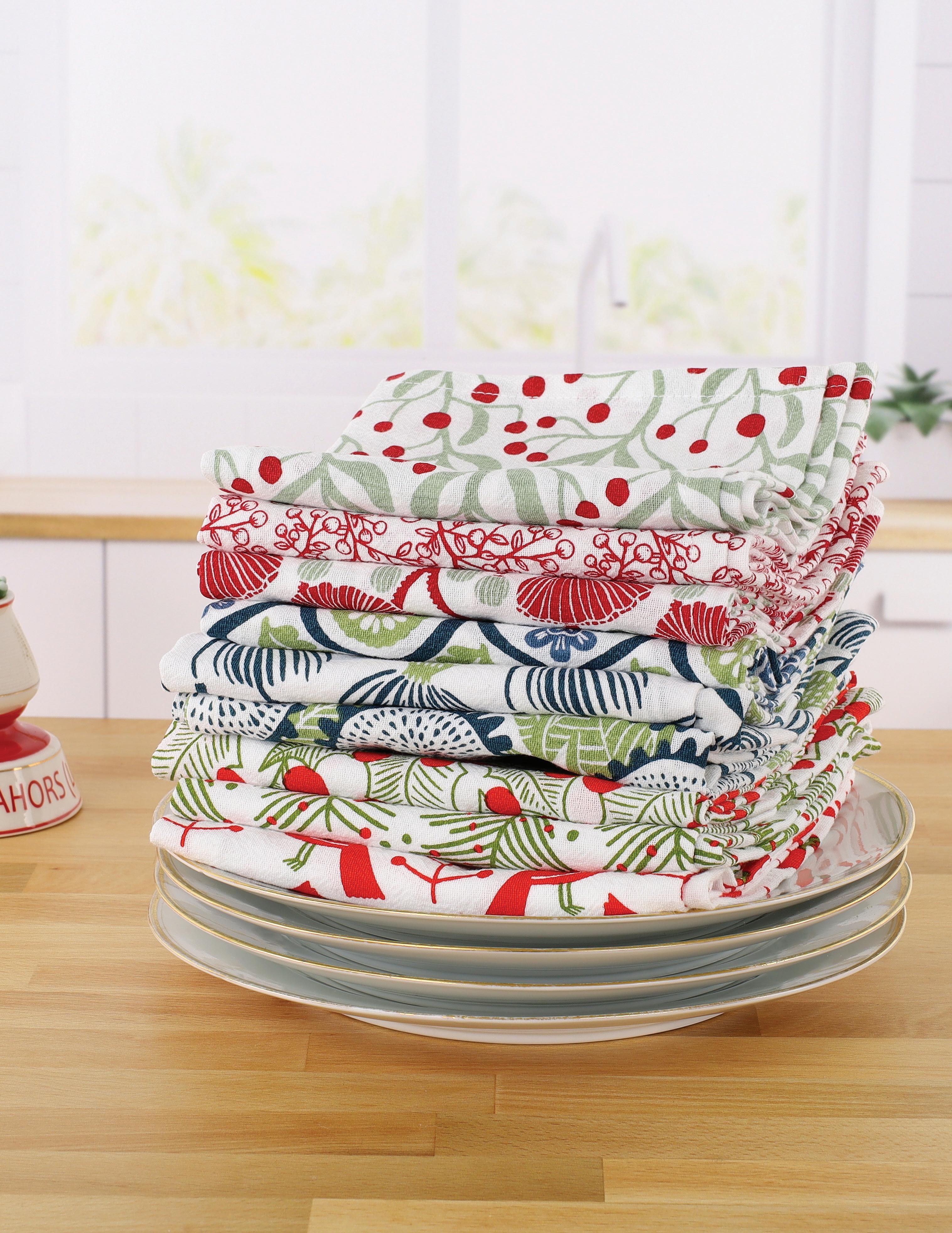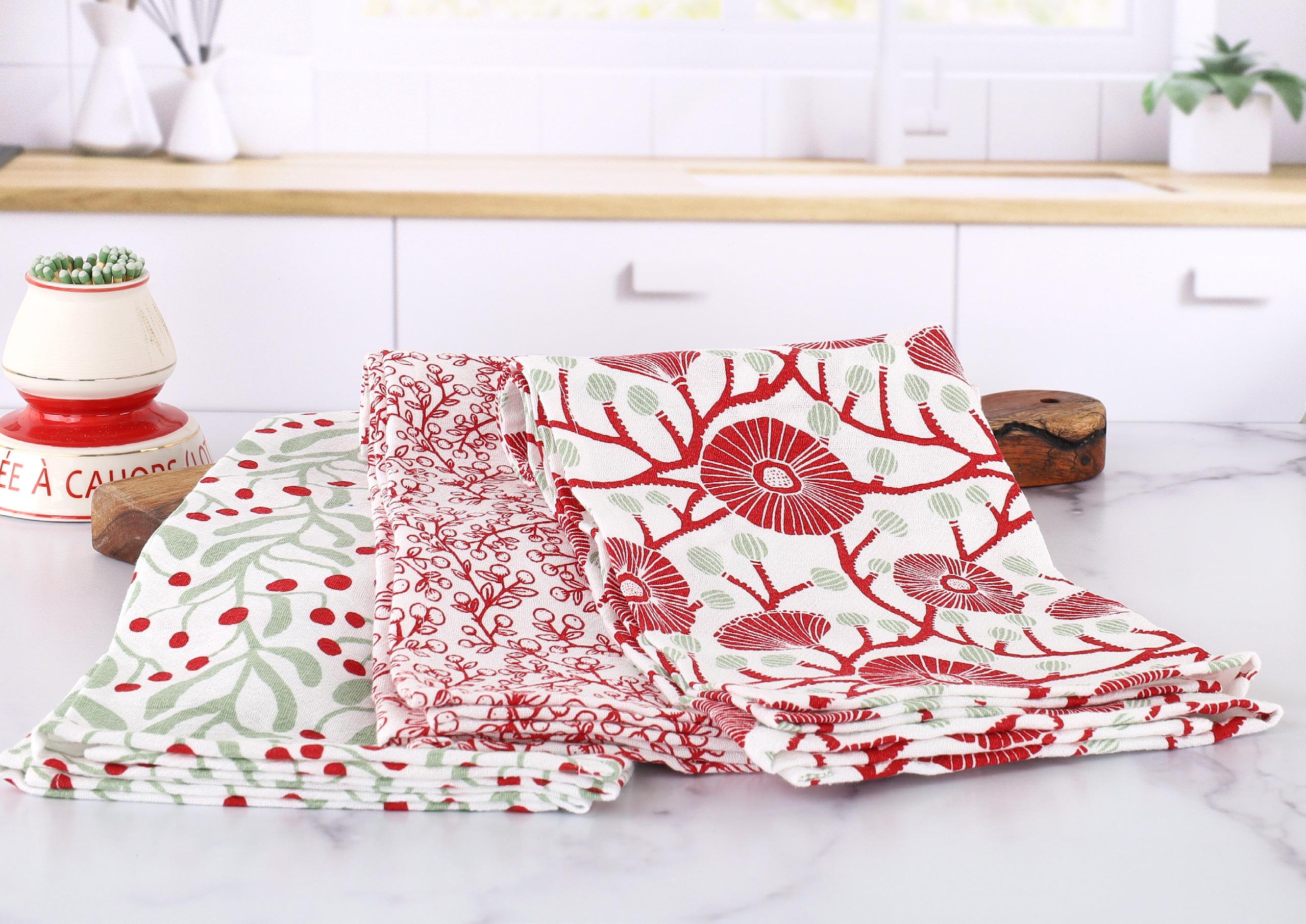 Add a dash of holiday cheer to the kitchen! Our 100% cotton kitchen towels are the perfect gift for home cooks and hosts alike, super absorbent, durable, and anything but basic. Featuring festive, colorful patterns that coordinate beautifully with our home textiles, they bring both function and flair to every holiday kitchen. A practical little luxury that