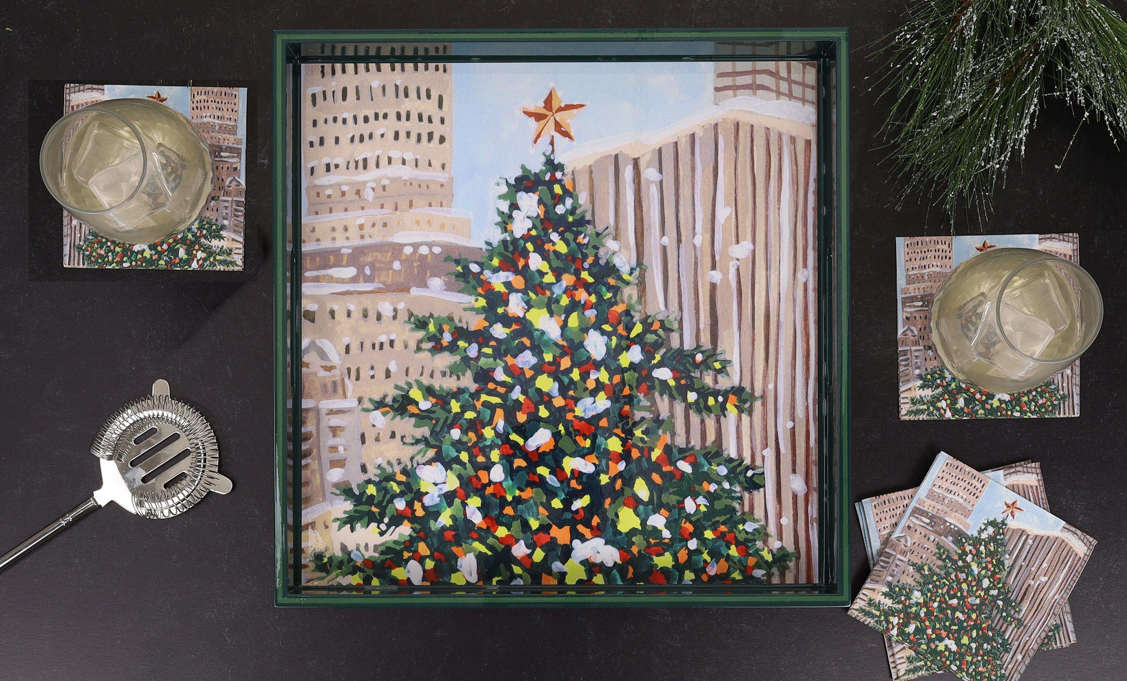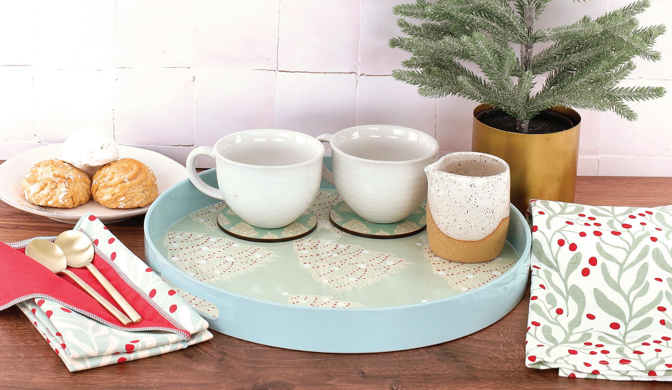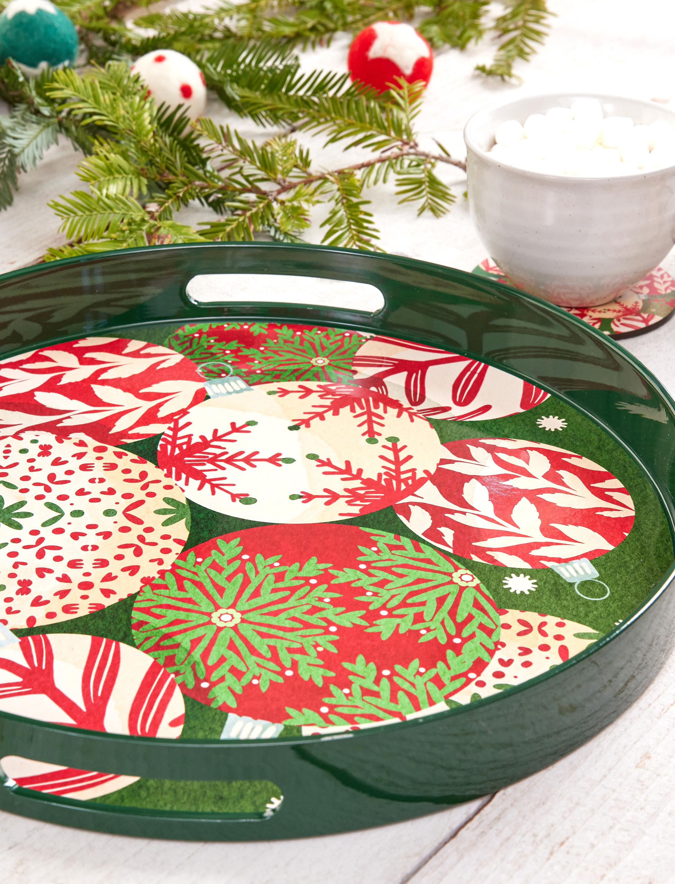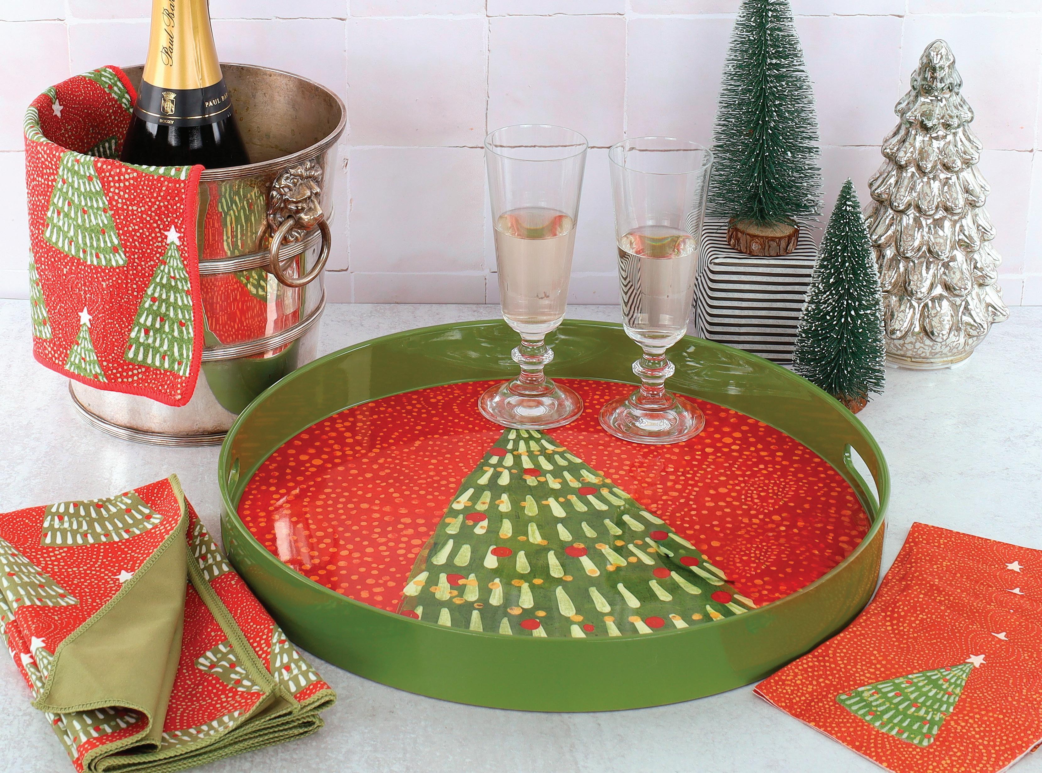 Our handcrafted trays, beloved by customers, are both functional and decorative, featuring signature prints that shine on any holiday table. Pair them with our coordinating Cocktail Napkins for merry moments or Dinner Napkins for more refined celebrations. Each piece is made from sustainable materials and adorned with exclusive artwork, adding warmth and character to every setting. With coordinating prints across the collection, mixing, matching, and layering is effortless, making it easy to create tablescapes that feel both joyful and timeless. Perfect for holiday gifting or hosting, these entertaining essentials are the kind of keepsakes customers reach for year after year.