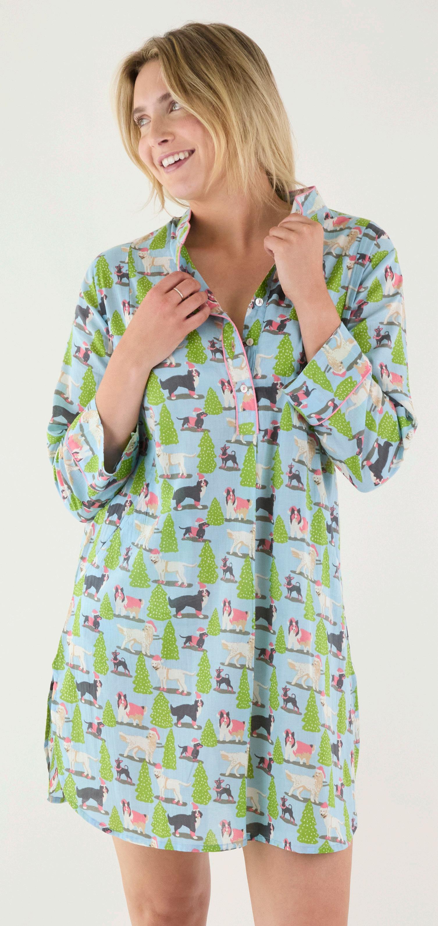 Our cotton nightshirts are the ultimate in comfort and charm, made from super-soft, breathable cotton that feels like a warm hug after a long winter day. With thoughtful touches like contrast piping and pockets, they bring easy elegance to lounging and lazy mornings. Each comes tucked in a matching drawstring bag, making it perfectly gift-ready for everyone on your nice list.