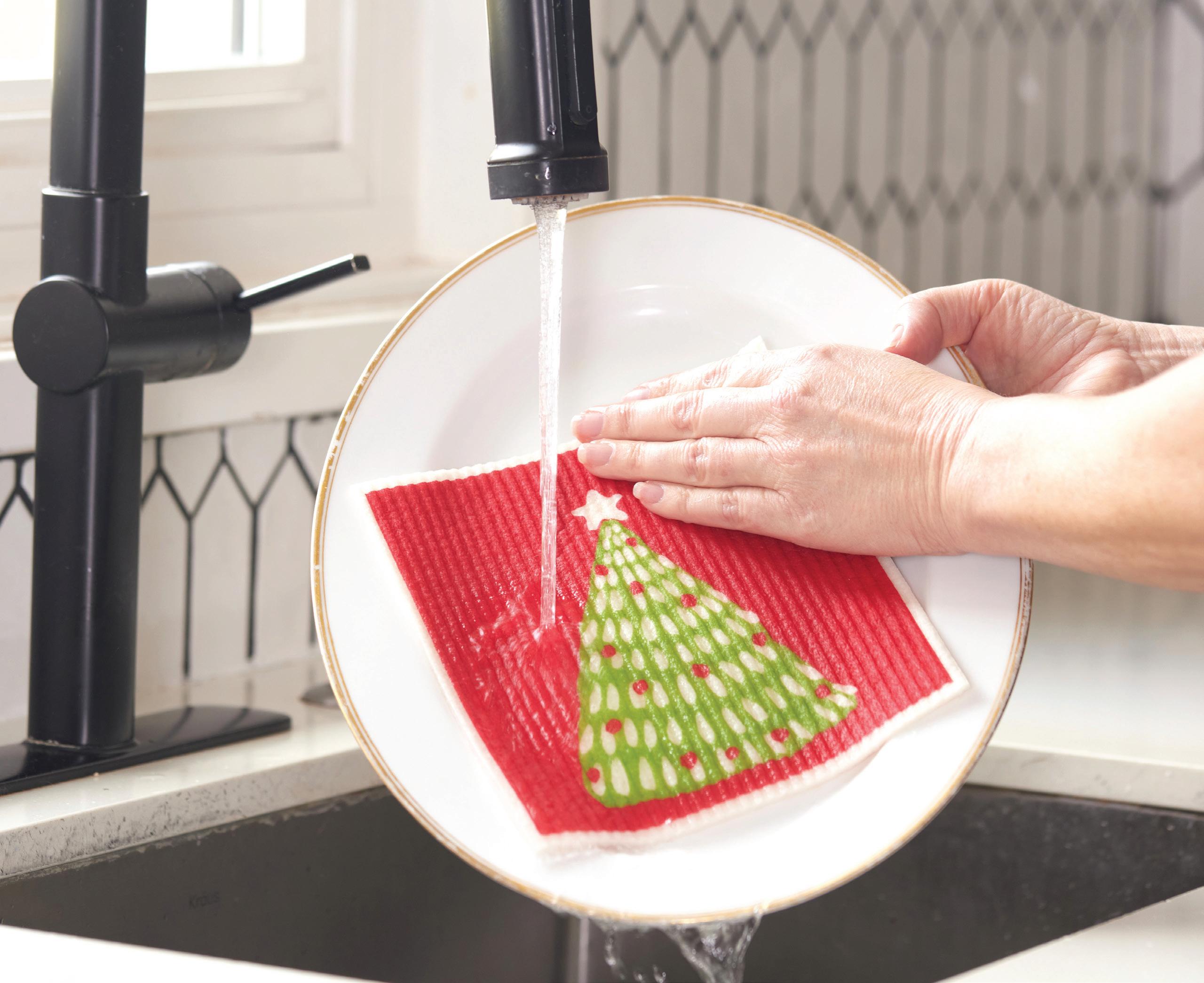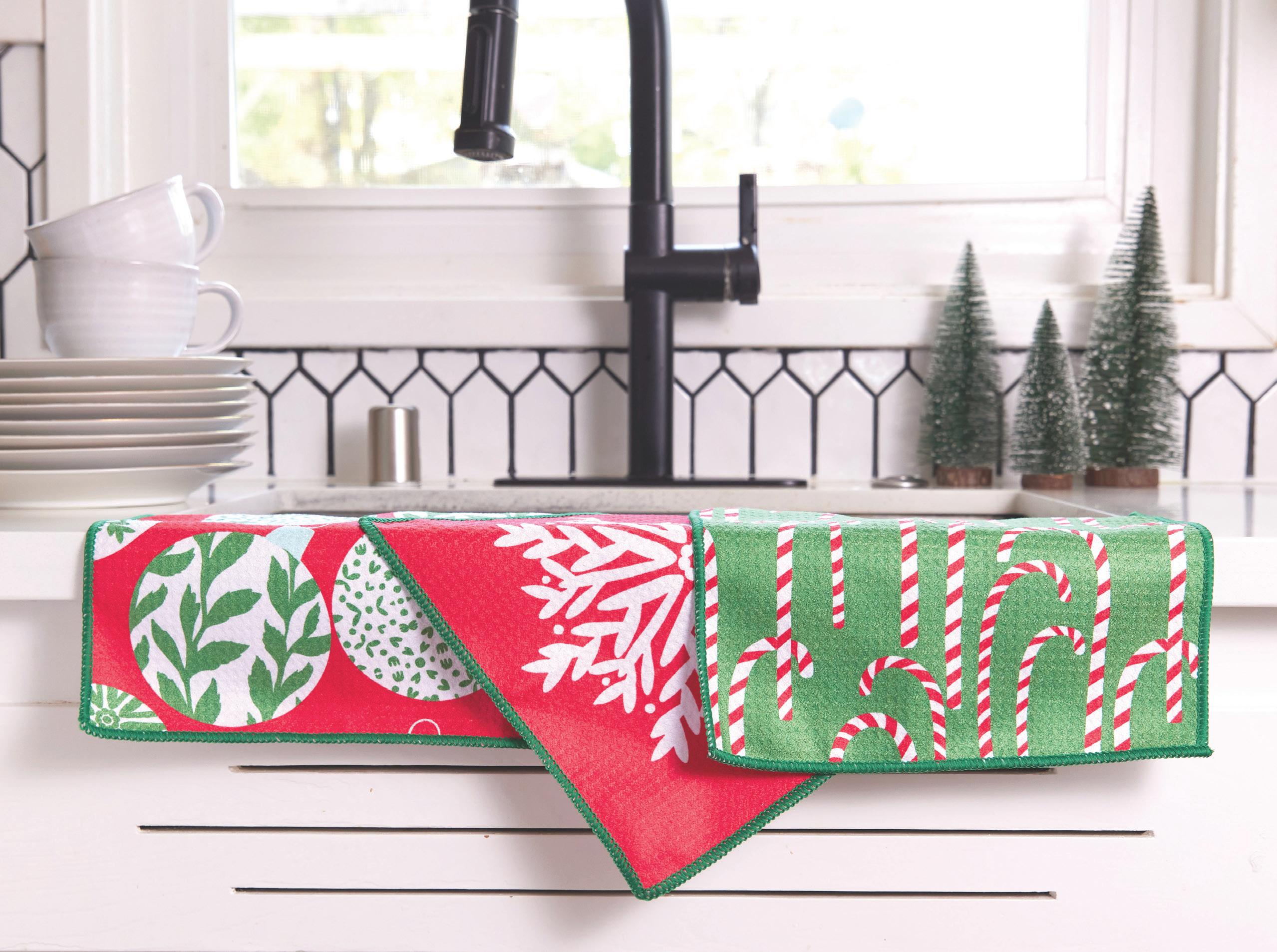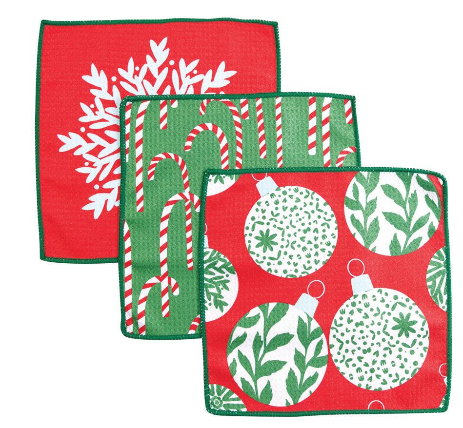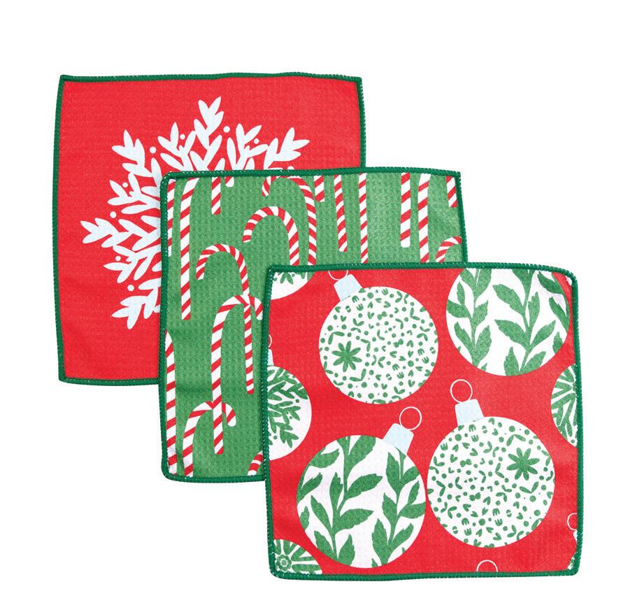 Made from recycled plastic bottles, our dish cloths are ultraabsorbent, quick-drying, and soft to the touch—keeping kitchen cleanup cheerful and sustainable. Each set includes three coordinating patterns with looped edge stitching for extra durability and festive style. A colorful, practical gift that’s as good for the planet as it is for holiday spirits!