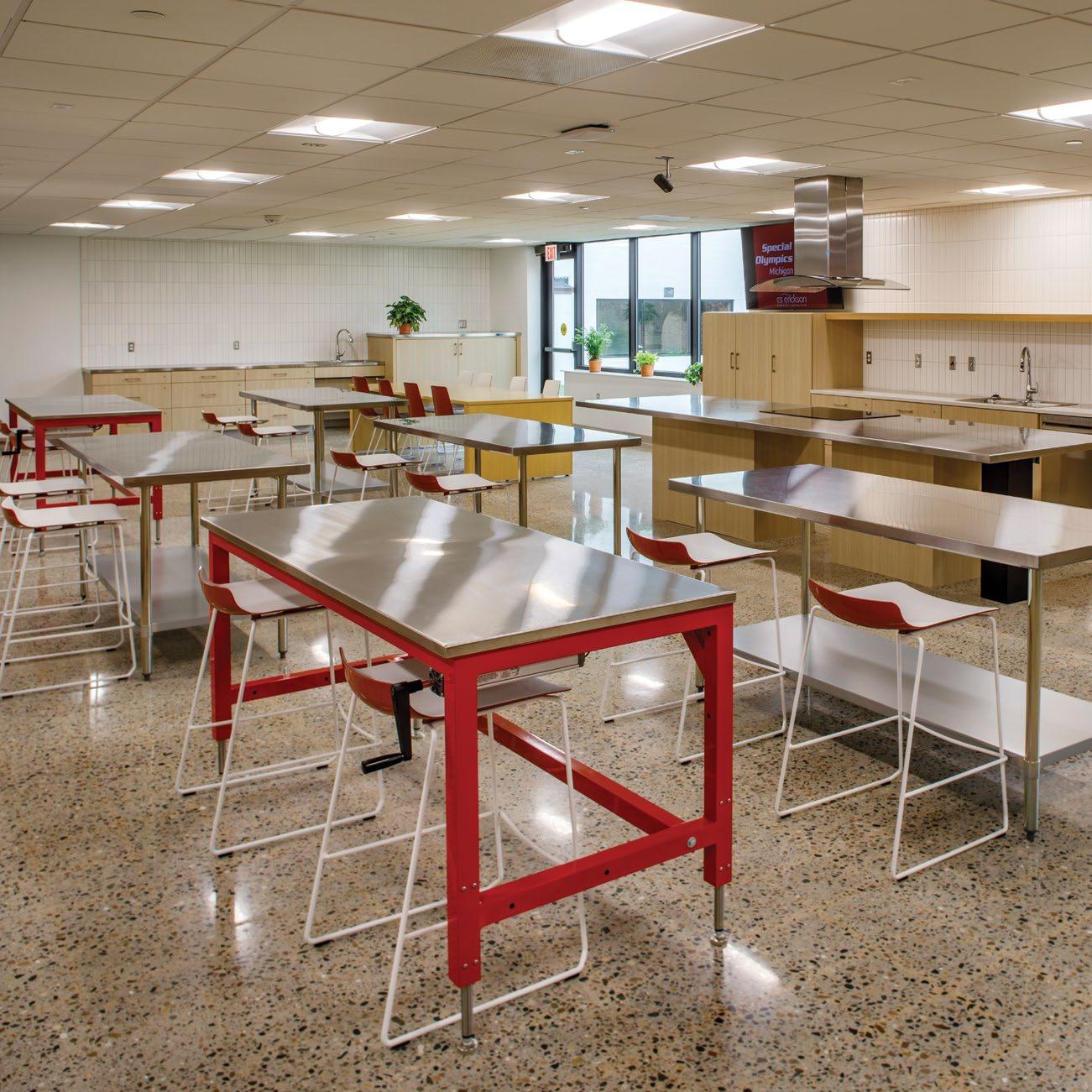 Rockford’s multi-phase partnership with Special Olympics Michigan was rooted in a people-first approach, with athletes at the center of every decision. From fitness and warm-up areas to an athlete hub, learning kitchen and museum, the renovated spaces were designed to support performance, comfort and connection. Athletes contributed design input across key elements, including lighting, sound and furnishings, ensuring the environment reflects their needs. The result is a welcoming, accessible space that empowers athletes on and off the field.
