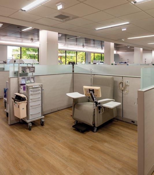 Corewell Health Greenville Hospital’s garden-level was transformed into a modern, patient-focused environment that includes the W. H. Braman Cancer Center as well as the Sleep Lab and key administrative functions into a thoughtfully renovated space. The redesign introduced new infusion bays, exam rooms, sleep labs and a dedicated wellness lounge, all supported by upgraded infrastructure and improved workflows. Relocating the exterior entrance further enhanced accessibility, creating a more intuitive and supportive experience for patients and staff while strengthening long-term operational value.