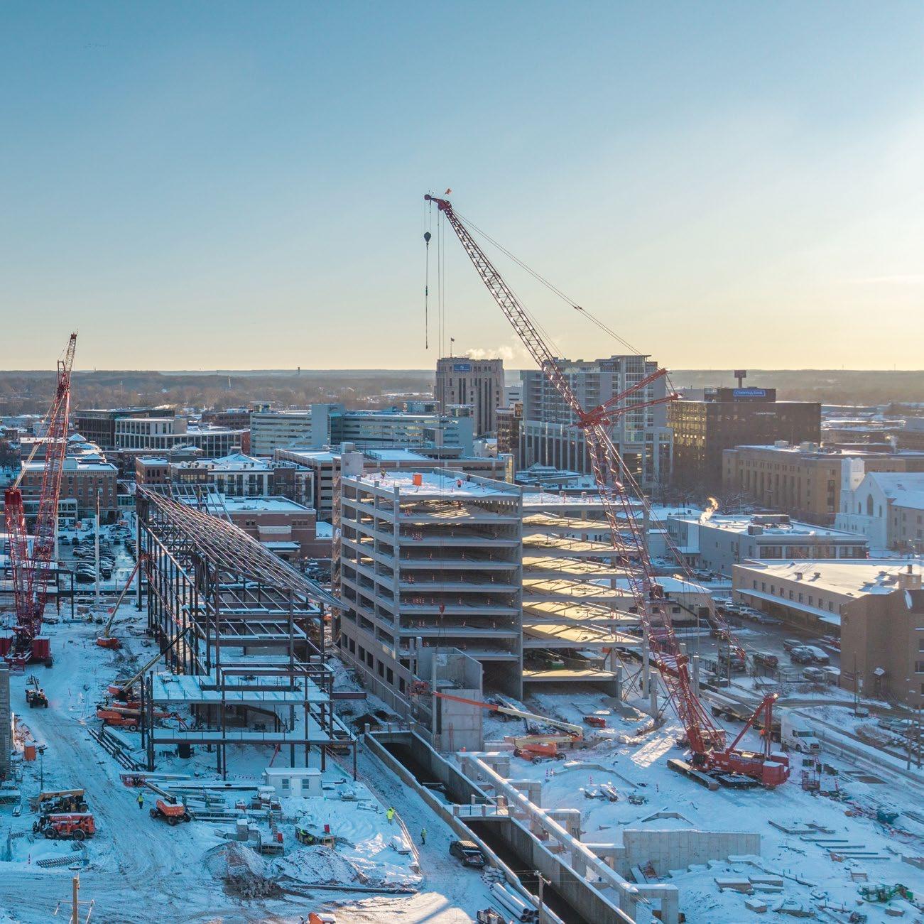 Rockford is serving as Owner’s Representative for the new 450,000 sq. ft. Kalamazoo Event Center in downtown Kalamazoo, a multipurpose venue designed to anchor community activity year-round. The facility will host nearly 240 events annually, from concerts and shows to collegiate and professional sporting events, including future home games for Kalamazoo Wings and Western Michigan University’s hockey, and men’s and women’s basketball. The Center also features a 1,200-car parking deck and a flexible event space to support a wide range of uses.