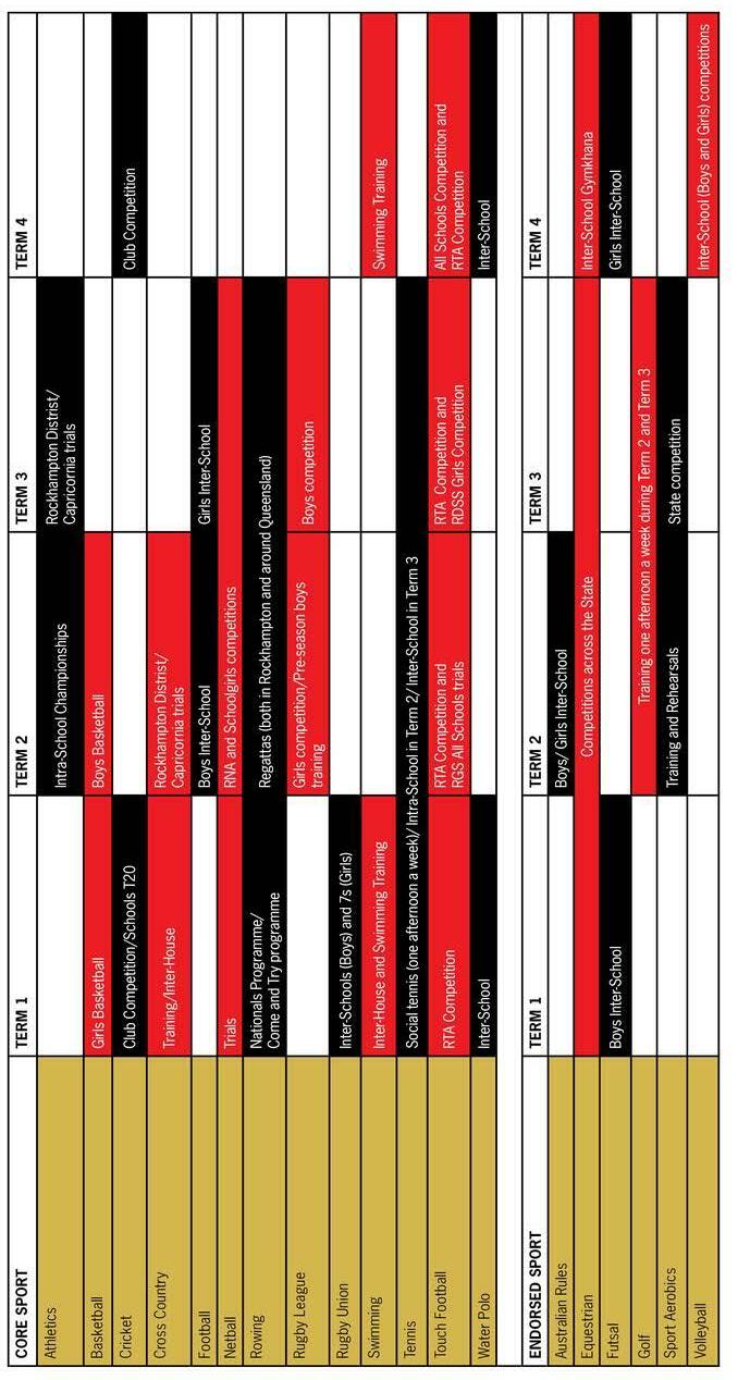 Students are expected to attend the following School events: Athletics Carnival, Cross Country, Swimming Carnival, Speech Day and excursions. All members of the School community have a responsibility to uphold the values of The Rockhampton Grammar School.