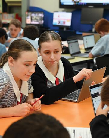CLOCKWISE FROM TOP LEFT: Year 9 students Sithuki Liyanage and Arsha Kennedy fine tune their Art skills; Year 7’s Charlie Crowther makes another break at rugby league; Year 1’s Oliver Liu paints a masterpiece in Art; Lara Pearce portrays Queen Elizabeth II at the Year 6 Day of Notables presentations; Year 3 students Jimmy Hansen and Amelia Esdale search for some tasty strawberries; Standing up for being kind to others are Prep students Walter Linton, Quinn Buchholz, Lilly Griffiths, and Arjun Mayuran; Working through a STEM challenge are Year 10 students Lincoln Proffitt and