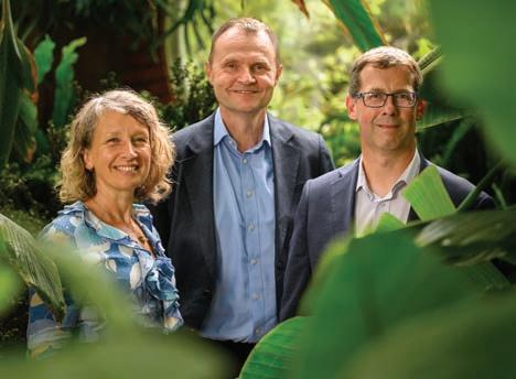 TURNINGANEWLEAF: Lefttoright:GardensCEOSaraBlair-Manningwiththe university’sProfAdamTickellandProfWilliamBloss