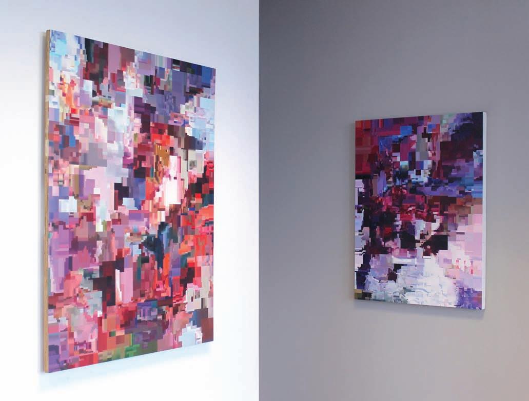 PaulLemmonisabitofacontradiction.His workislargelycreatedusingtraditionaloil paintonboard,yethisfinishedwork encompassestheessenceofthedigitalworldscraped, deconstructedandturnedintoanalogueworksofart. Paul’spixelatedworksarecreatedbycollectingthen breakingapartdigitalimagesandfilmfootage blurringthelinesbetweenreallifeandtechnology. Hesaysit’squiteironicstandinginfrontofa paintingmadefromphysicalboardandpigments derivedfromtheearthyetcreatedbyscrapingthe digitalworld.Pauldescribeshisworkasfloating