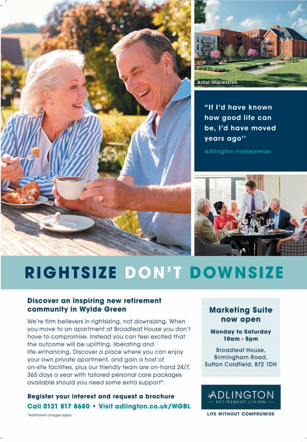 AnewretirementlivingcommunityinWyldeGreen,SuttonColdfield,issetto completethiswinter.ConstructionbeganlastsummeratBroadleafHouse,an AdlingtonRetirementLivingcommunitywhichwilloffer57one,twoandthreebedroomretirementapartmentsfortheover55s.AlexandraJohnson,salesand marketingdirector,said:“Ourapproachtoindependentlivingensures homeownersdon’thavetocompromiseontheirlifestyle,theirsociallifeortheir independence.”FourofAdlington’sretirementcommunitieshavewonGold, SilverandBronzeAwardsattheWhatHouse?Awards.