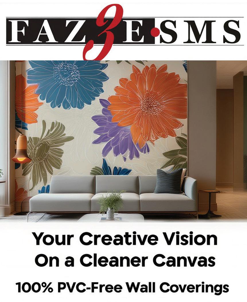 “Wallcoverings have gotten smarter. This includes PVC films with air-egress liners for bubble-free application, improved adhesives that are more reliable on different paint and surface types, and PET fabricbased options with repositionable adhesives that give installers more forgiveness. Both the experience and performance have gotten better by adapting and scaling to the needs of the market,” summarizes Jay Kroll, director of product education, General Formulations.