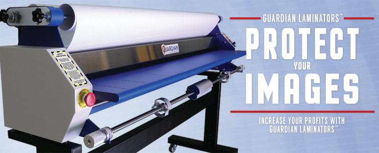 Guardian Laminators are an affordable, easy to use solution for all of your finishing, laminating, and mounting needs. The Guardian’s intuitive design makes for quick and easy use, maintenance, and cleaning… saving you time on production. Solid, all-steel construction, cold or heat assist models, crowned silicone rollers, upper and lower idler bars, single-level nip adjustment, and easy load drop-in supply mandrels with a centering system provide high quality performance. For more information visit guardianlaminators.com or contact Supply55, Inc. at 734-668-0755 or sales@supply55.com. INFO# 232