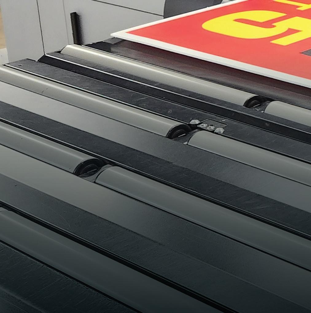 two dedicated flatbeds, including a P5 350HS from Durst Image Technology US, LLC. We generally have 275,000 square feet of Coroplast brand in stock at all times. Fast turn times are the only way to satisfy the demand, so in-stock inventory is step one. Updating production schedules throughout the day puts the real in ‘real time,’” offers Tucky.