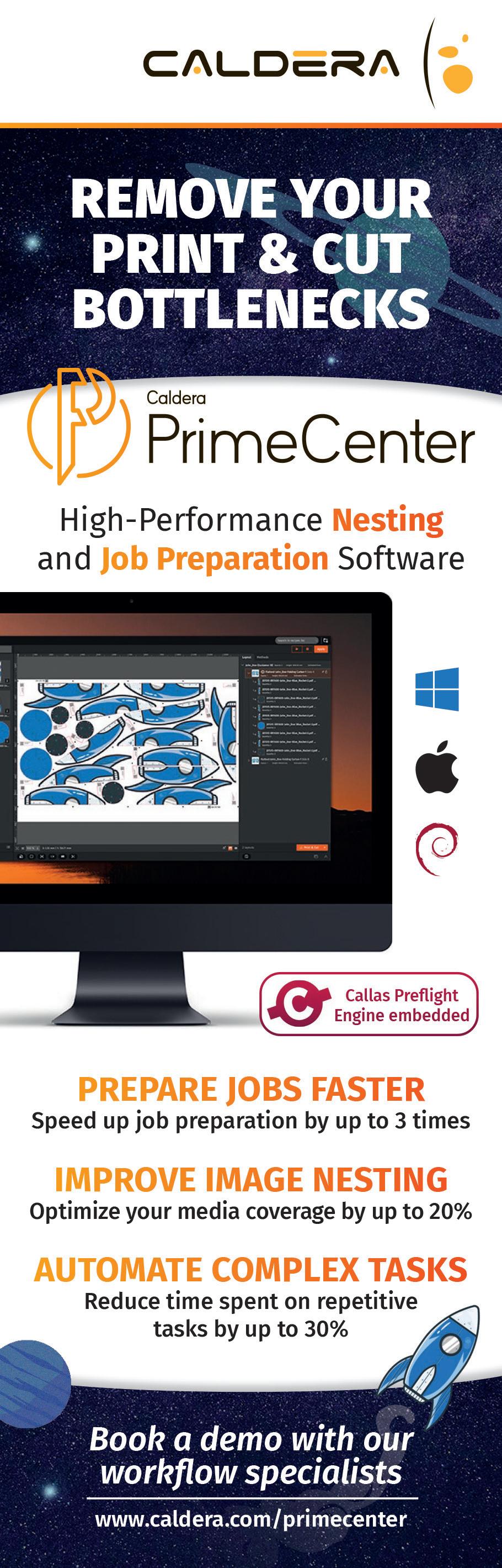 of printer, media, ink set, and ink type is the goal of all RIPs in the market,” stresses Luigi Ostani, application specialist EMEA, Caldera. RIP manufacturers like Caldera strive to offer ease of color management through their solutions.
