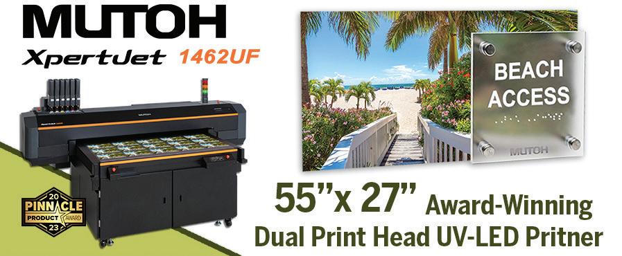 Featuring a table size of 55x27 inches, the XpertJet 1462UF stands out. This large dimension allows for increased production capacity and profitability, enabling users to print up to 5.91 inches thick. Whether you’re looking to enhance your existing UV printer or venture into new areas such as ADA compliant braille, awards, packaging, signage, or home décor, this printer is ideal. Powered by MUTOH’s VerteLith Genuine RIP software and bundled with FlexiDESIGNER MUTOH Edition 21, a $2,199 value, the XpertJet 1462UF offers businesses a powerful solution to enhance productivity, expand creative possibilities, and deliver exceptional print quality. Request a free print sample at mutoh.com. INFO# 230