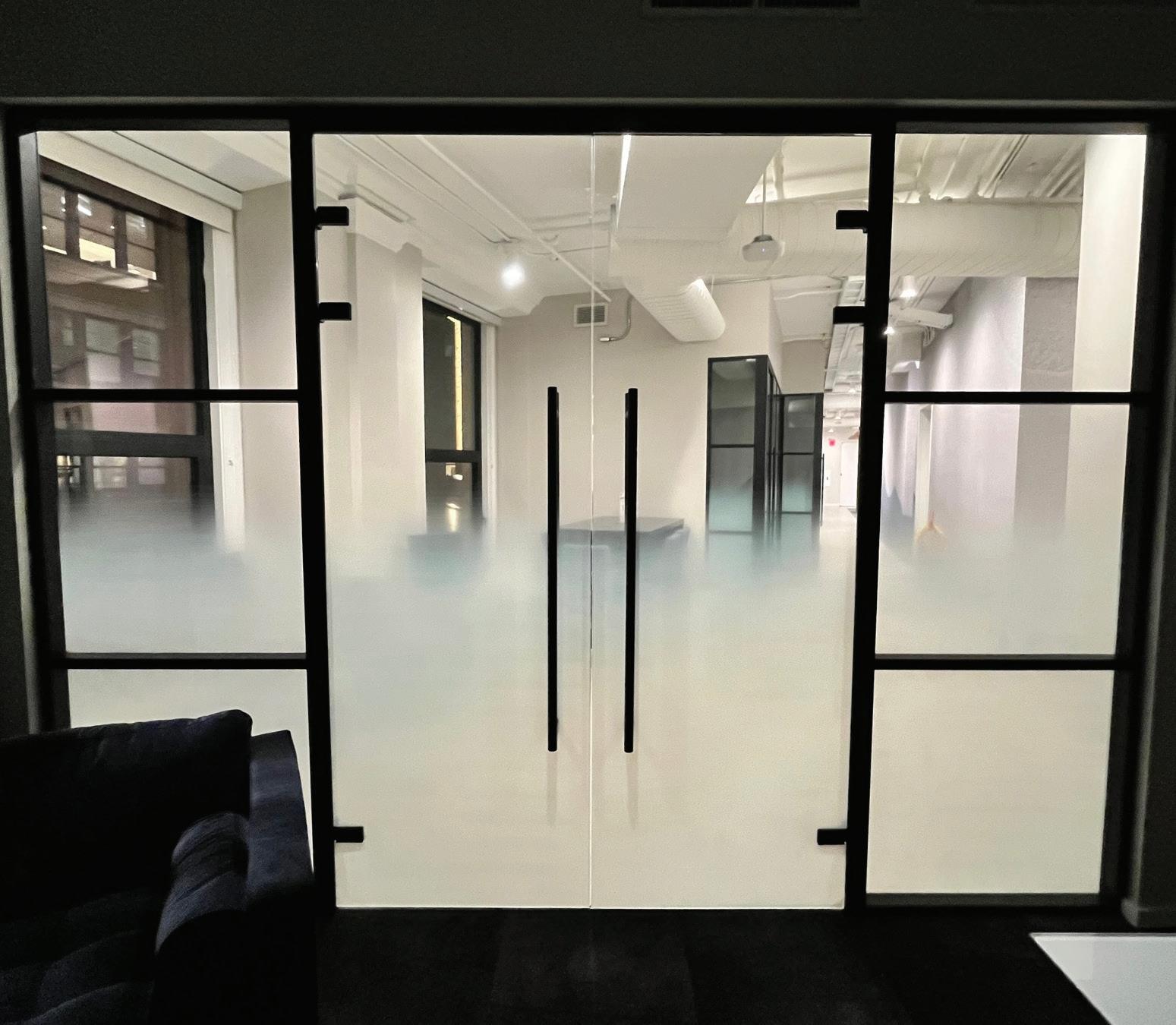 “All these new buildings are being constructed with glass and everyone can see right in the offices,” shares Soulsby. “This means a lot of Mactac IMAGin B-free Frosted is being installed after the ‘cool and hip’ offices are finished. Then we come in and make it usable.”