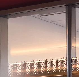 For instance, the airport graphic was redone with M-Dot after the original material proved to be too opaque. “Once they switched to MDot, and the translucent material allowed the light to come through, it looked amazing. It was like a huge light box,” explains Soulsby.