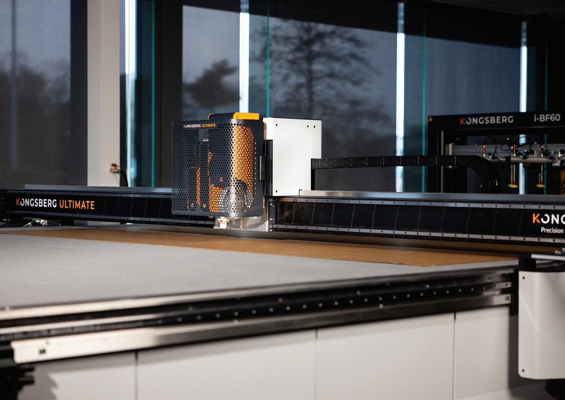 Kongsberg Precision Cutting Systems, hall 8A, booth B43, debuts advanced robotics and next generation digital cutting technology. Not only is the Kongsberg Ultimate making its public debut at the global exhibition, but the company also previews the future of automation with the newest addition to its line—a sevenaxis rail-mounted robot cell that allows customers to increase throughput utilizing multiple pallets and multiple cutting systems. drupa visitors also have the opportunity to see the flagship in the MultiCam range of advanced routing and CNC cutting systems, the Apex3R, as the company
