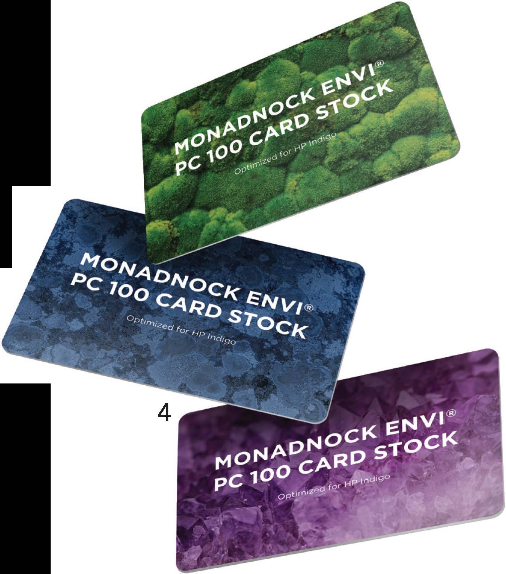 3. The HP PageWide Advantage 2200 is well suited for publishing and transactional applications—including MICR—on inkjet treated media. 4. The Monadnock Envi PC 100 card is optimized for HP Indigo presses.