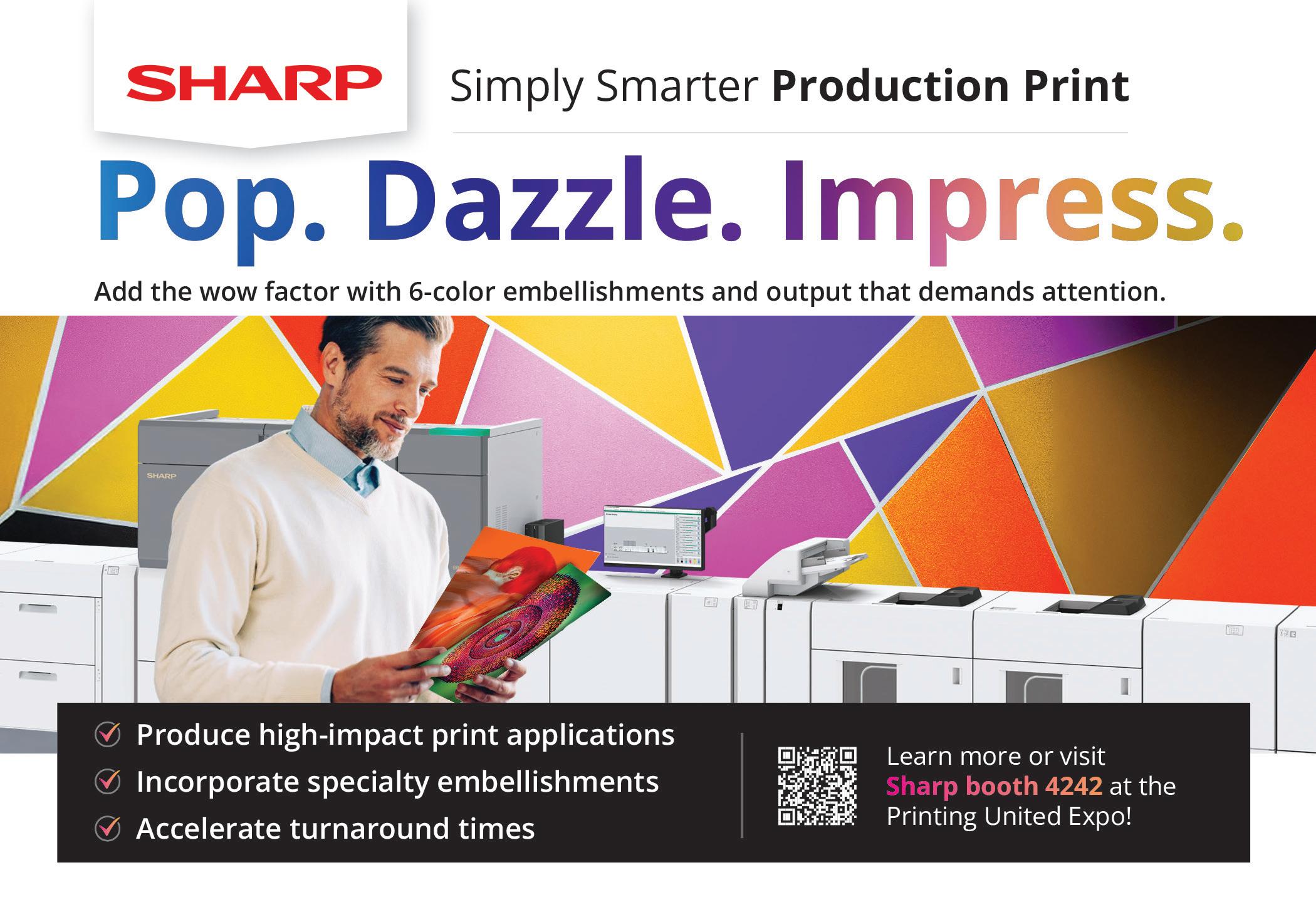 Sharp, booth 4242, encourages attendees to stop by and preview its latest innovations in digital press technology, including the expanded BP-1200S Color Press Series with six-color single-pass output
