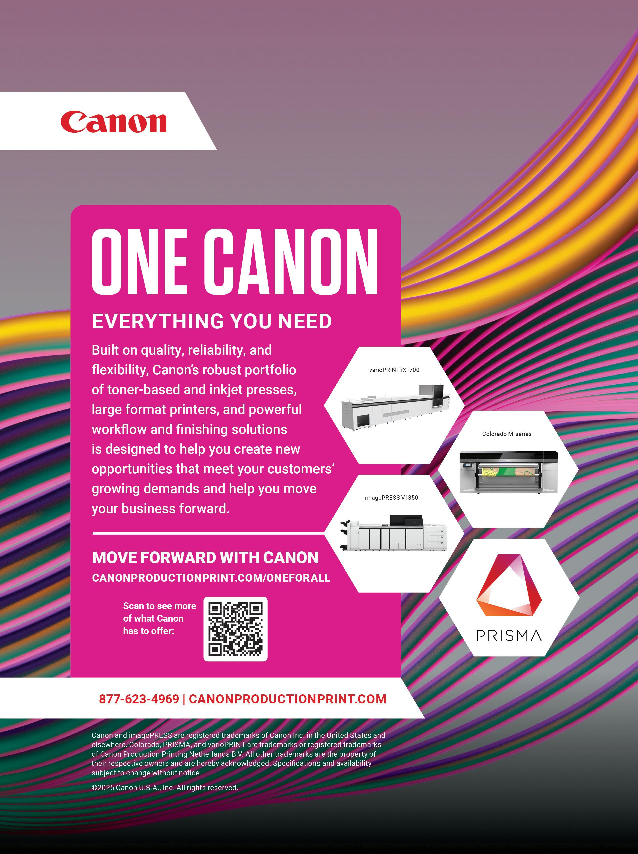 A significant trend from 2025 is diversification across the print industry. Rob Reddy, SVP, Production Technologies and Solutions, Canon U.S.A., sees providers actively seeking new avenues to expand portfolios