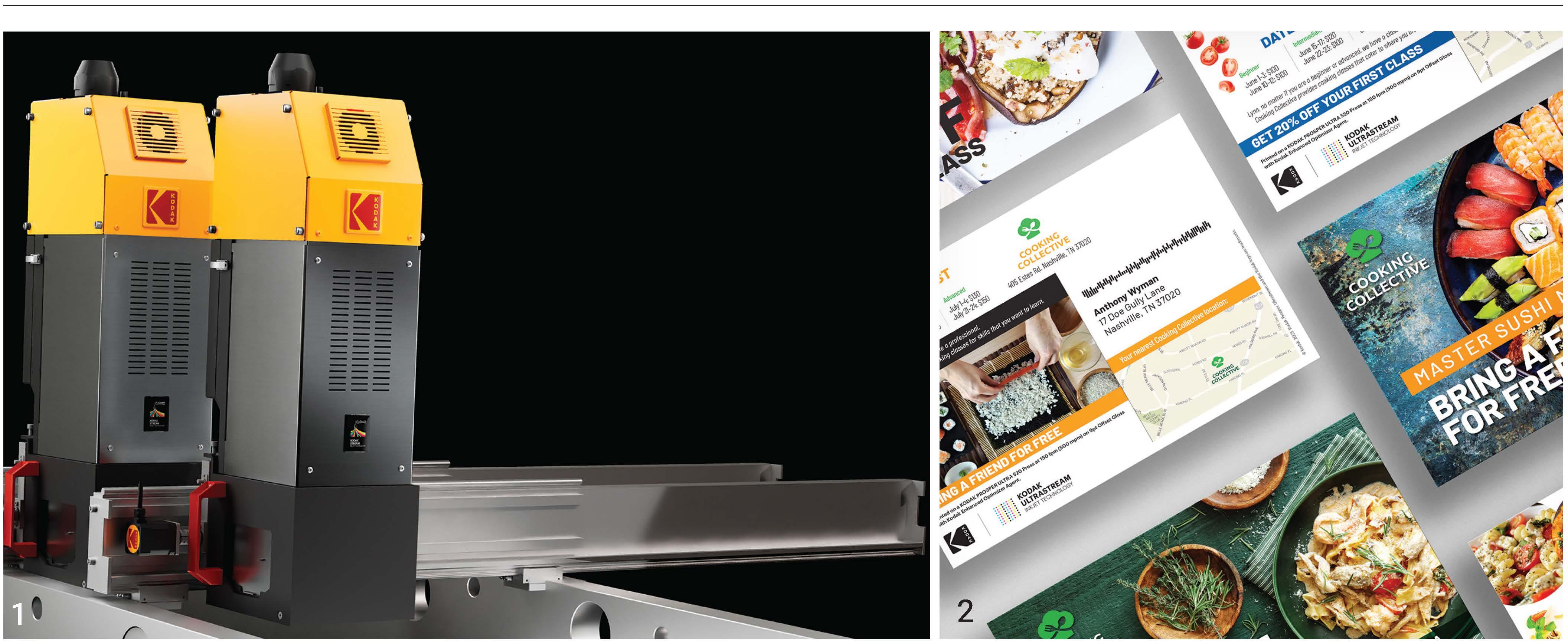 1. KODAK PROSPER Print Bar with Stream Inkjet Technology features unmatched speed and precision. 2. Brilliant colors burst to life on the KODAK PROSPER 7000Turbo Press as KODAK EKTACOLOR Inks and OPTIMAX Primers combine for stunning, vivid images. 3. Kodak Stream Technology delivers perfectly round, vibrant drops, ensuring exceptional print qualityforavarietyofapplications.