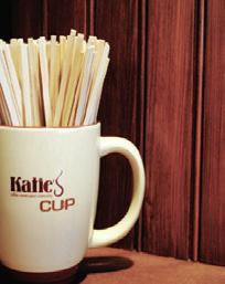 Katie’s cup features Fair-trade coffee drinks, baked goods, and lunch items. Katie’s Cup also is a bookstore which showcases local authors.