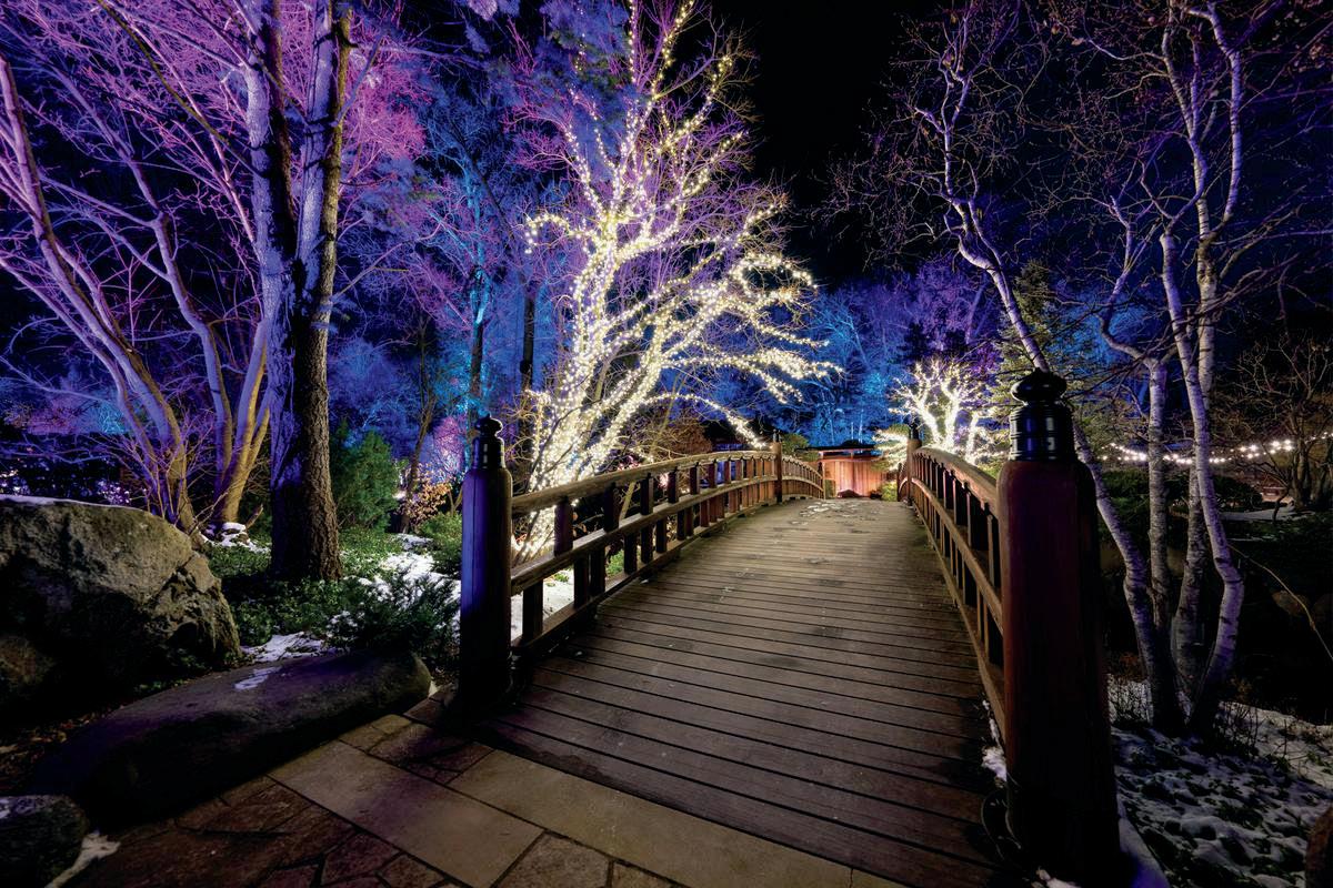 Thousands of string lights and dramatic uplighting highlight the landscape creating a peaceful, luminous walk through the Gardens Guests can enjoy made-to-order woodfire pizza, a rotating lineup of food trucks, and fireside dining and beverages inside the visitor center Sunday evenings include cozy readings of The Night Before Christmas by John Gleason. Admission ranges is $14, with member discounts and free entry for kids five and under.