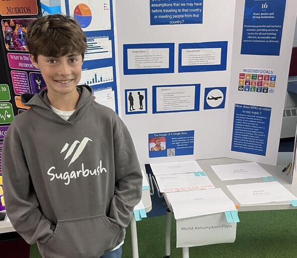 These experiences culminated in the 7th Grade Exposition, a student-led event that showcased curiosity, critical thinking, and self-directed learning. Students selected a topic they had explored during the year and developed an inquiry question to investigate a new, personally meaningful aspect of that topic. Drawing on their background knowledge and research skills, they created interactive presentations. On Expo Day, students proudly shared their findings with the school community.