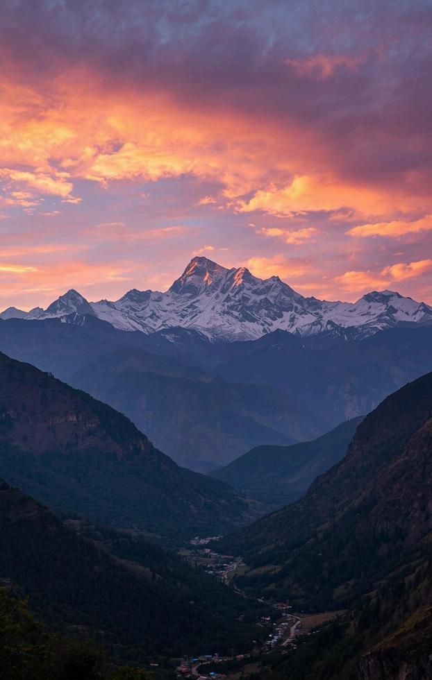 Showcases breathtaking scenery: snow-capped peaks, forests, rivers, and villages
