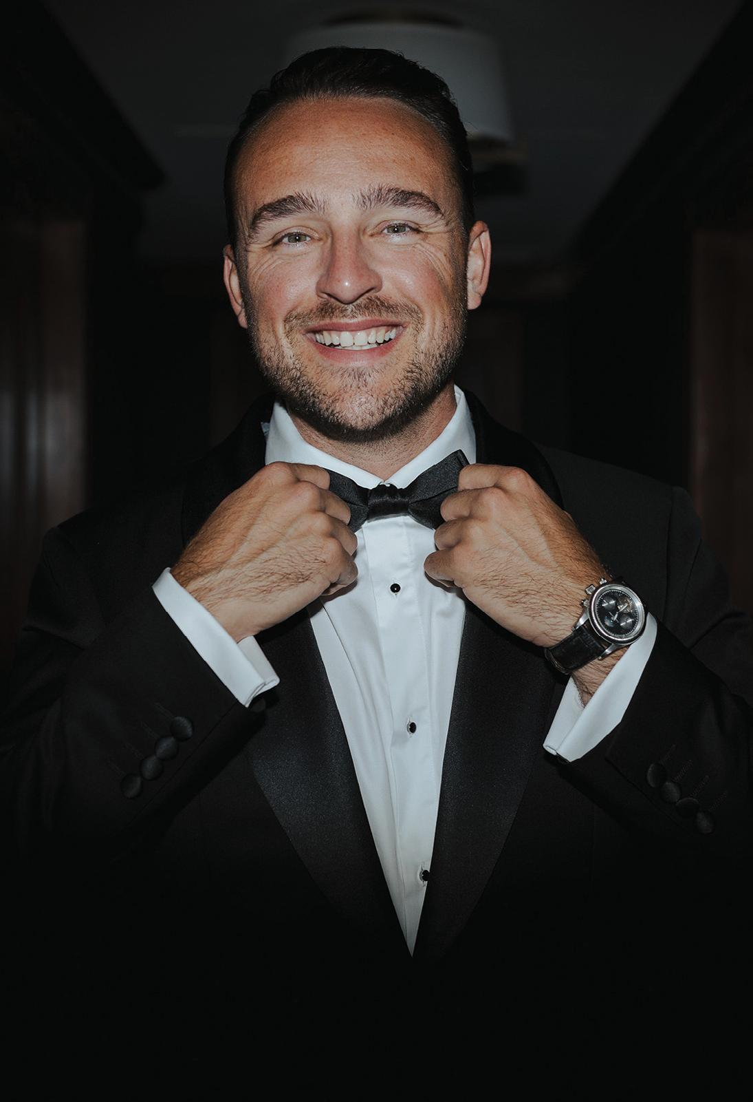 The groom was fitted in a classic black tuxedo from The Bridal Centre, complete with a sharp bow tie for a touch of timeless charm. A well-tailored tux is an undeniable choice; elegant, refined and effortlessly versatile. No matter the setting or bridal look, it ensures the groom looks sharp and sophisticated. In this case, the sleek ensemble offered the perfect contrast to the bride’s soft, romantic styling, proving that a classic will never go out of style.