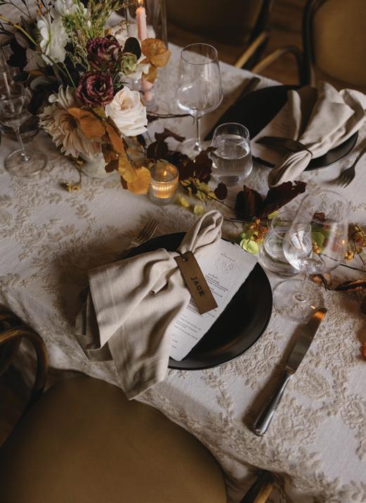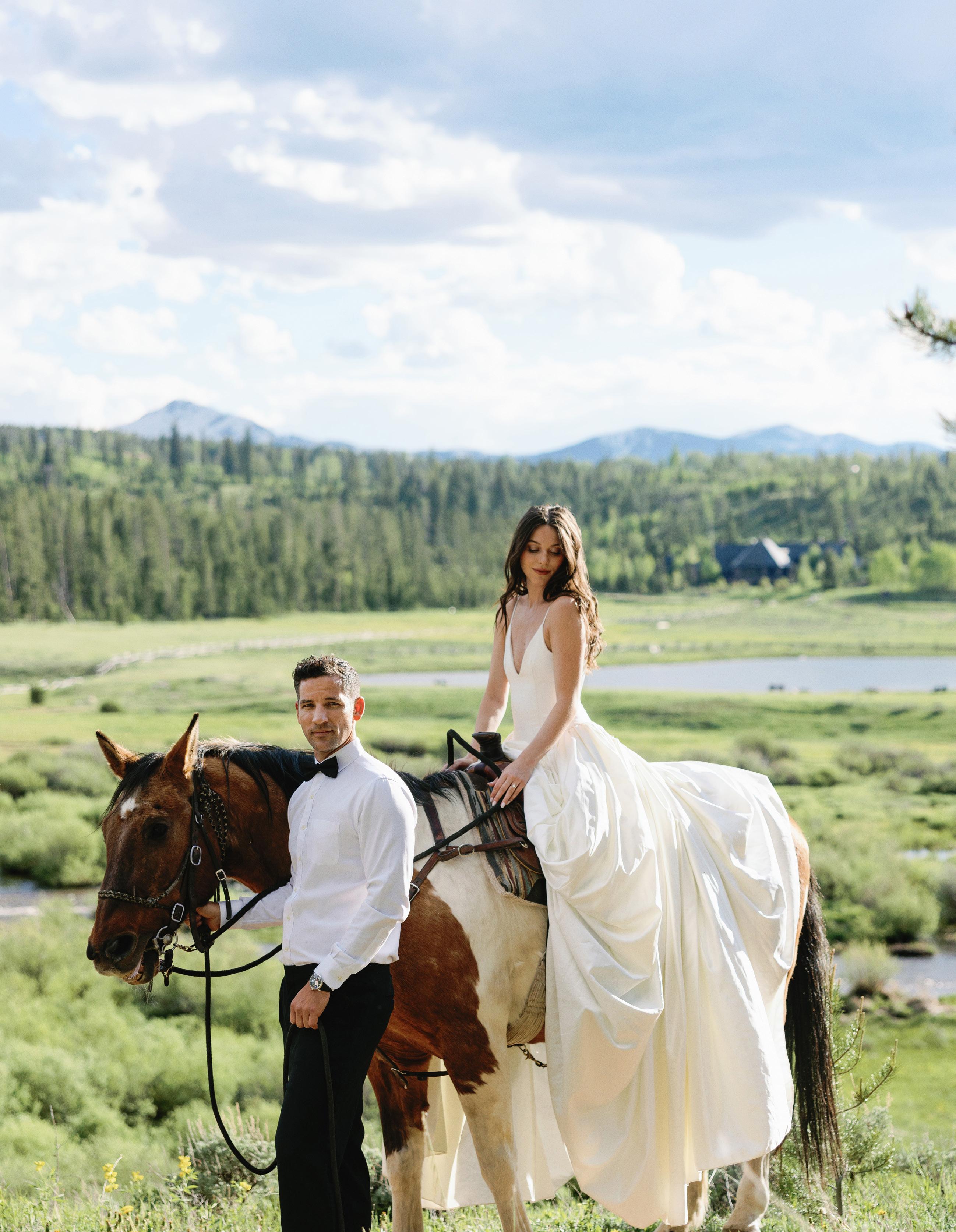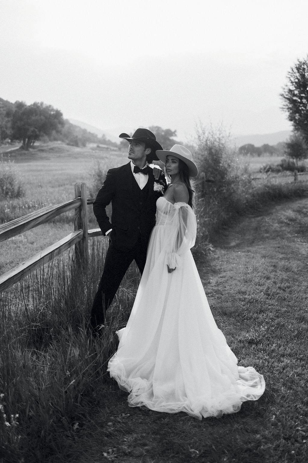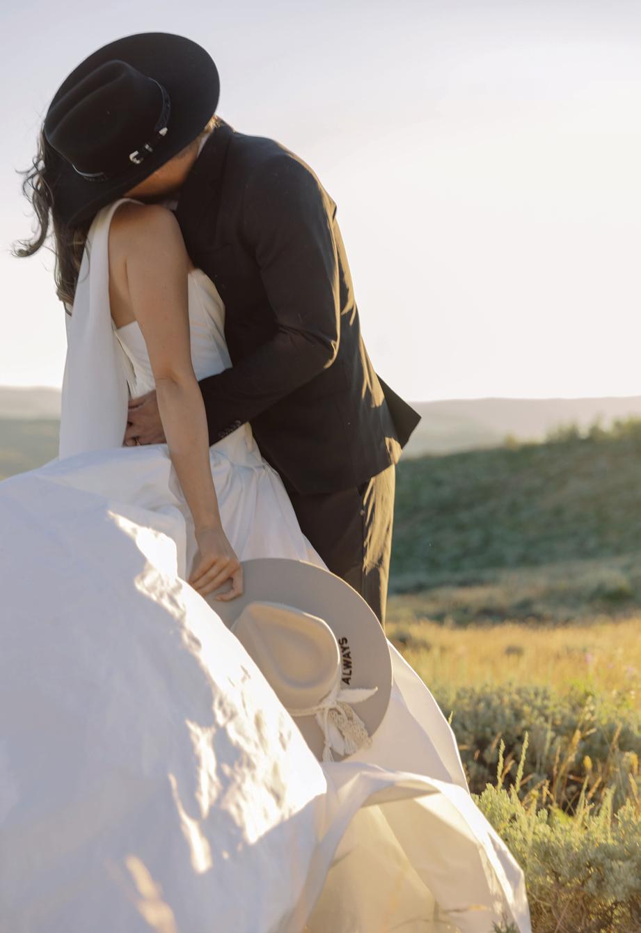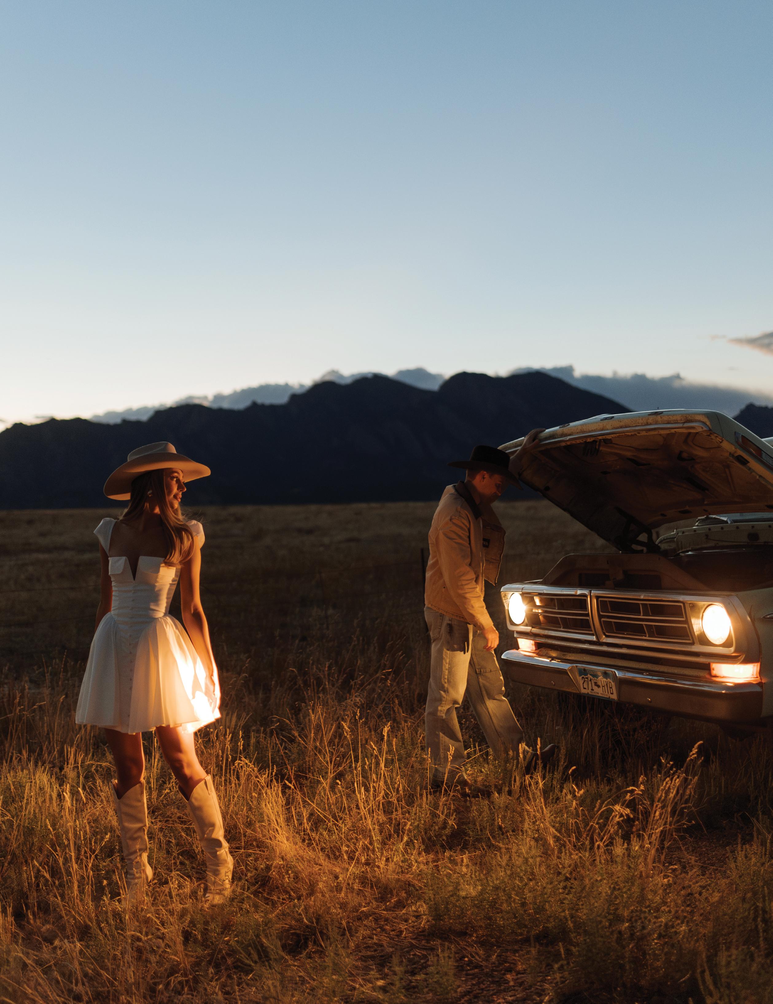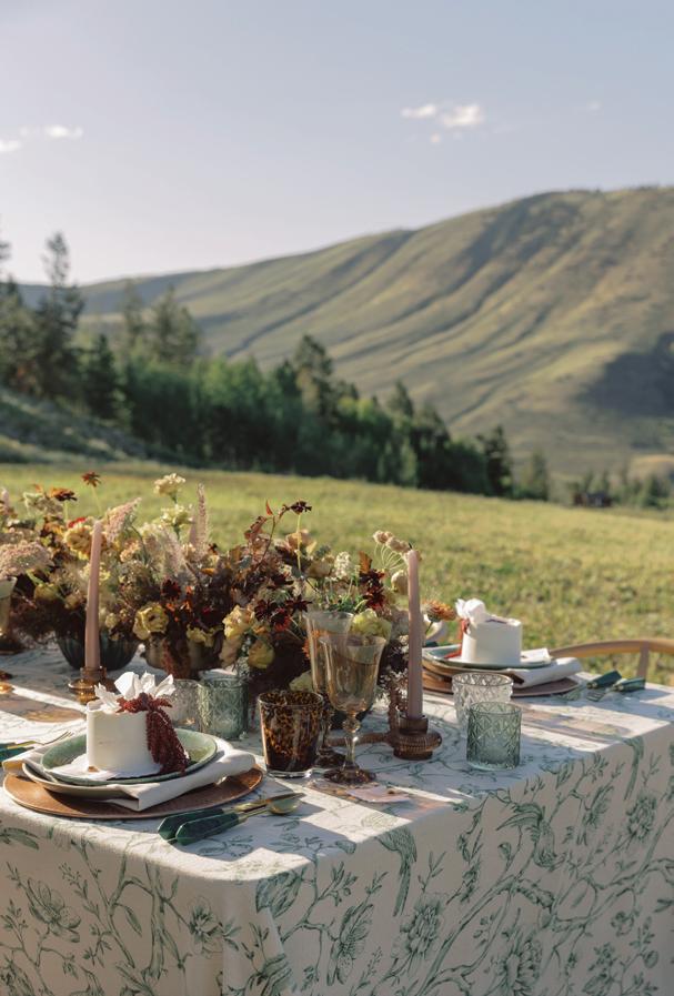 With the sweeping views of Tundra Springs as their canvas, Nicole Silver Events and Alicia Rinka set out to create a styled shoot that embodied the spirit of old money Western charm. The venue’s sprawling ranch and rugged peaks provided a cinematic backdrop for a look that blended refinement and rusticity. Think heirloom elegance meets cowboy cool, where timeless textures, understated details and heritage-rich style converge to tell a story of elevated celebration.