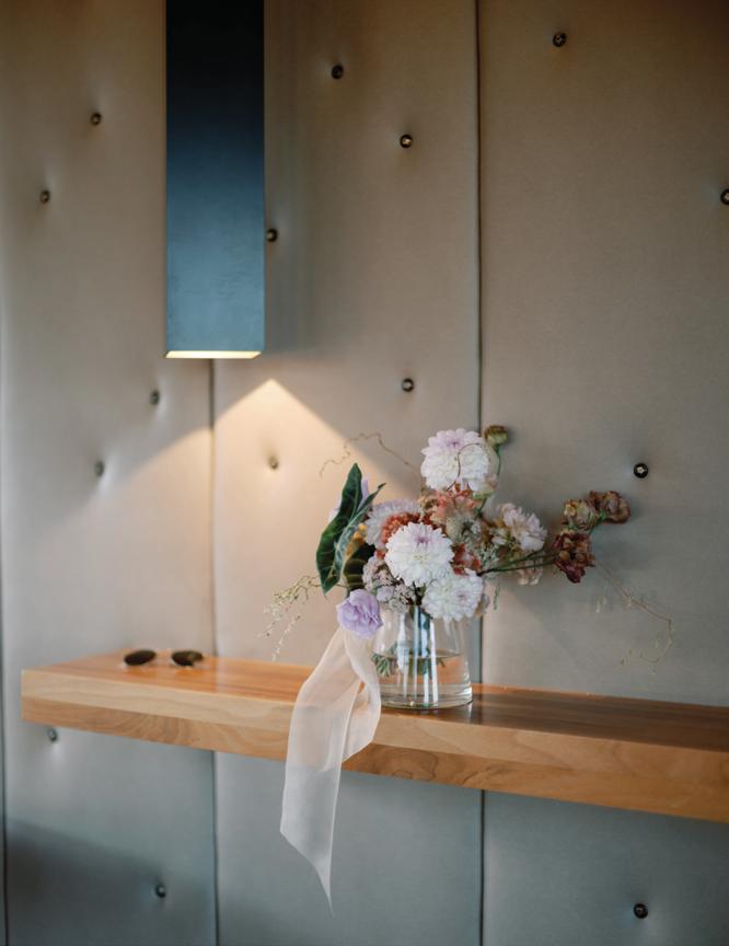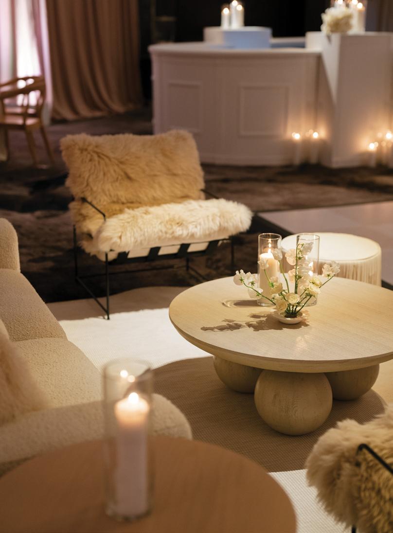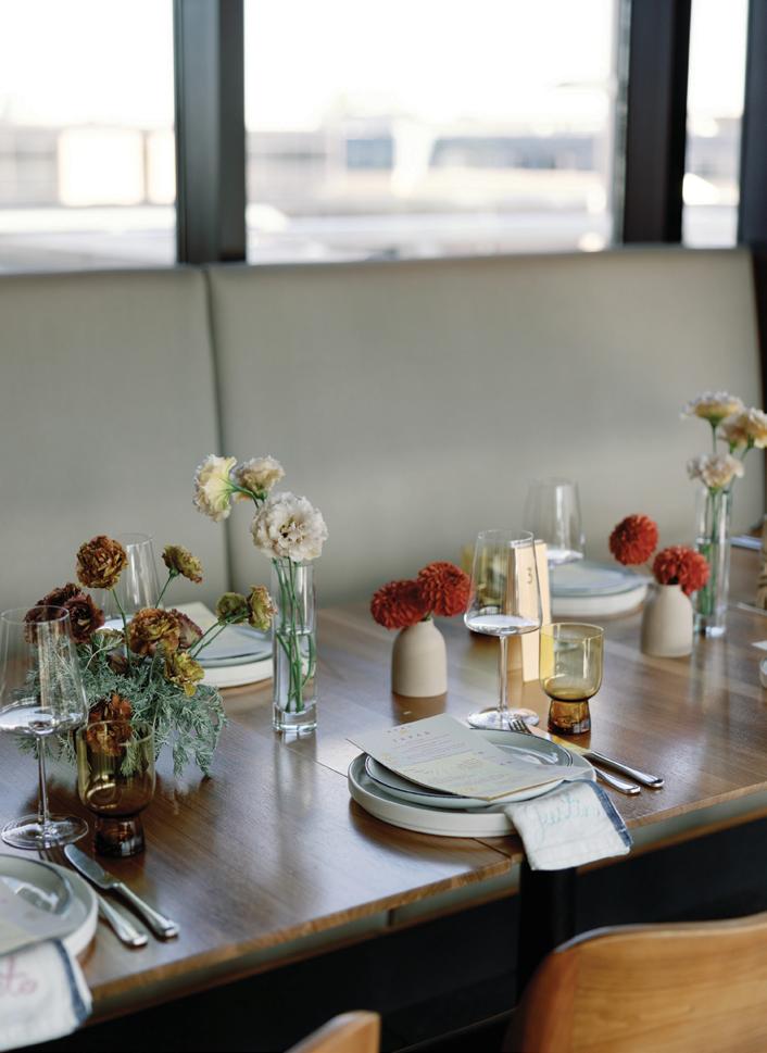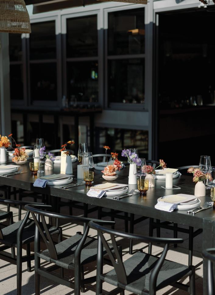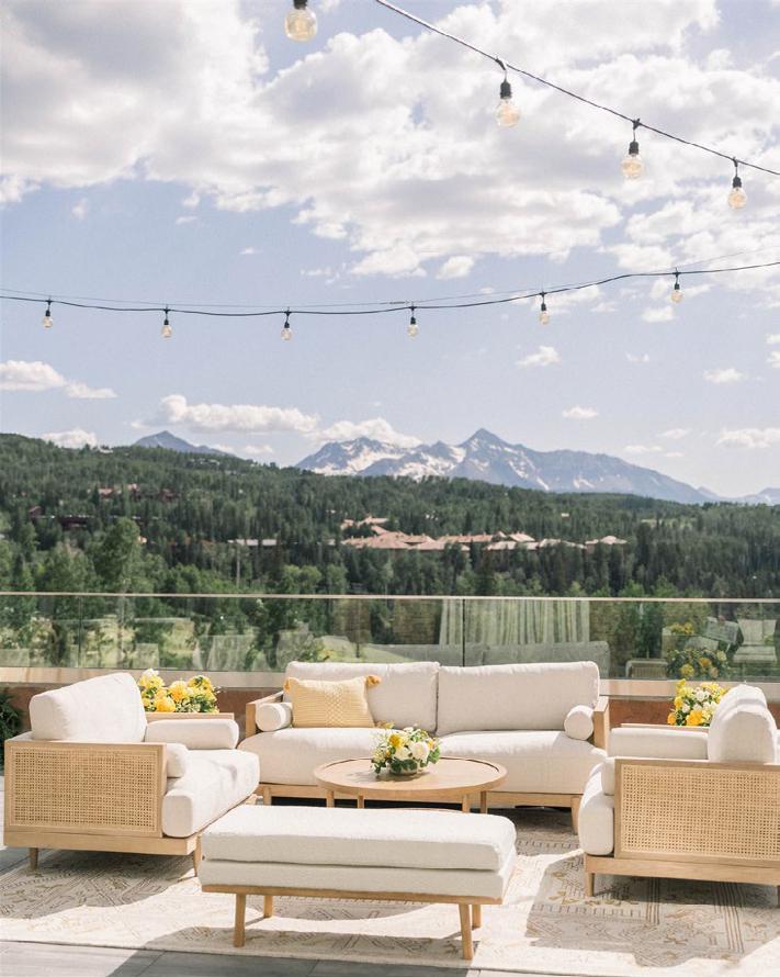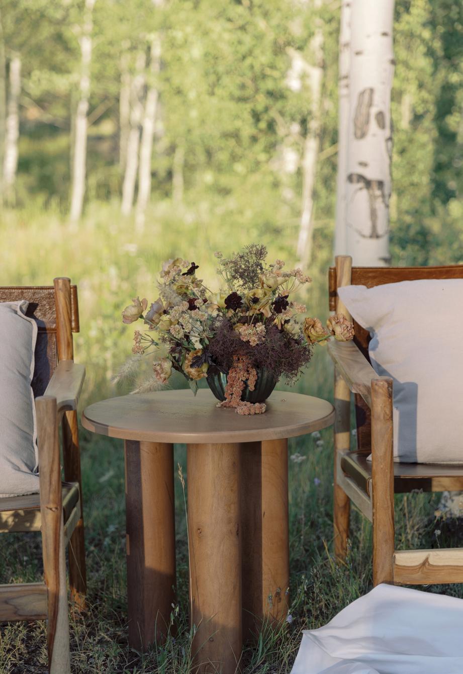 The bride’s bouquet, made entirely of blooms grown in the designer’s own flower garden, featured delicate dahlias, dancing cosmos and larkspur in shades of soft ivory and blush, adding a whimsical contrast to the bold ceremony setup. Inside, the reception embraced the same grounded palette, with warm-hued florals arranged against crisp linens and oversized windows framing the forested slopes. With panoramic alpine views, on-site lodging and multiple venue spaces to choose from, Purgatory Resort offers couples an unforgettable place to celebrate surrounded by Colorado’s most awe-inspiring landscapes.