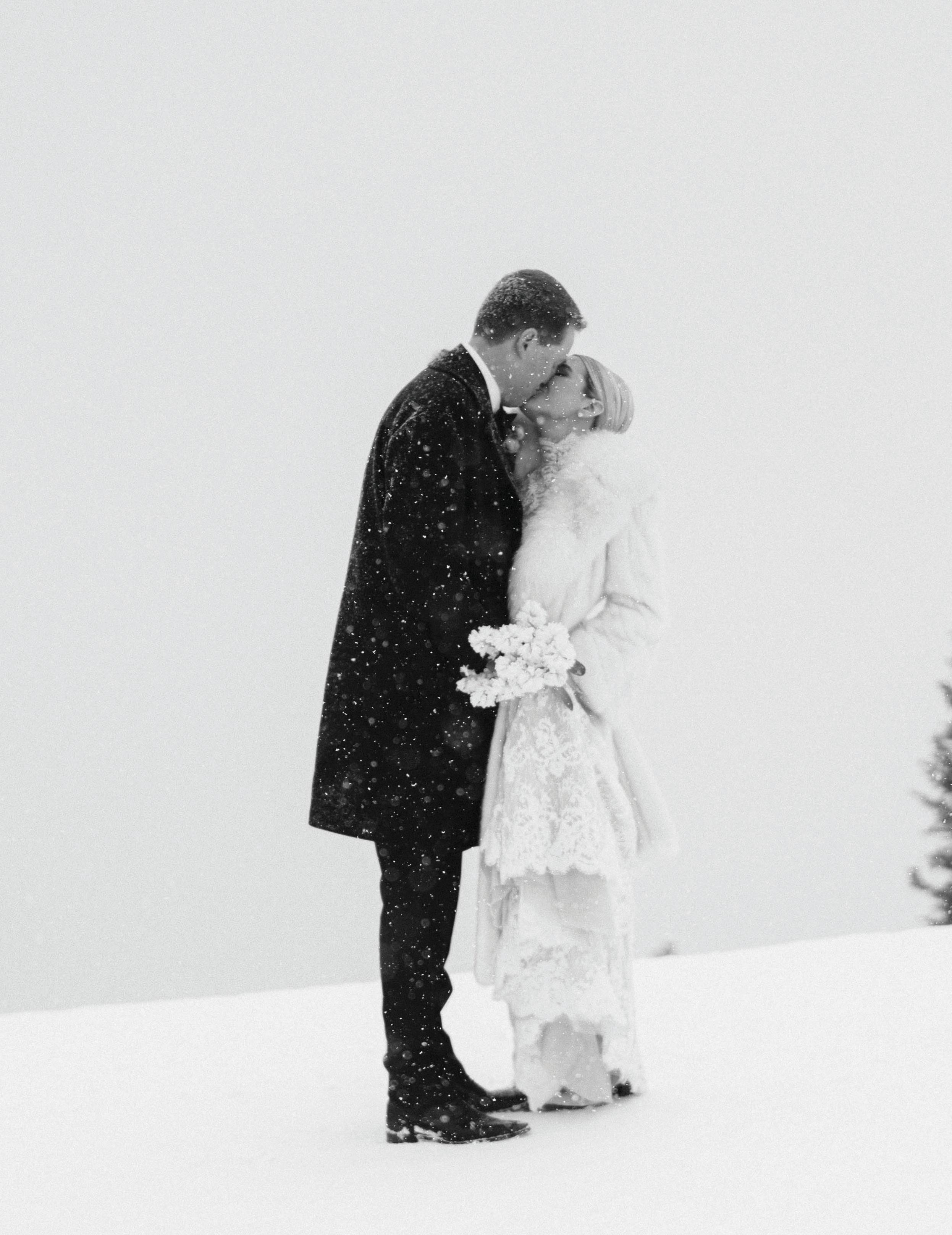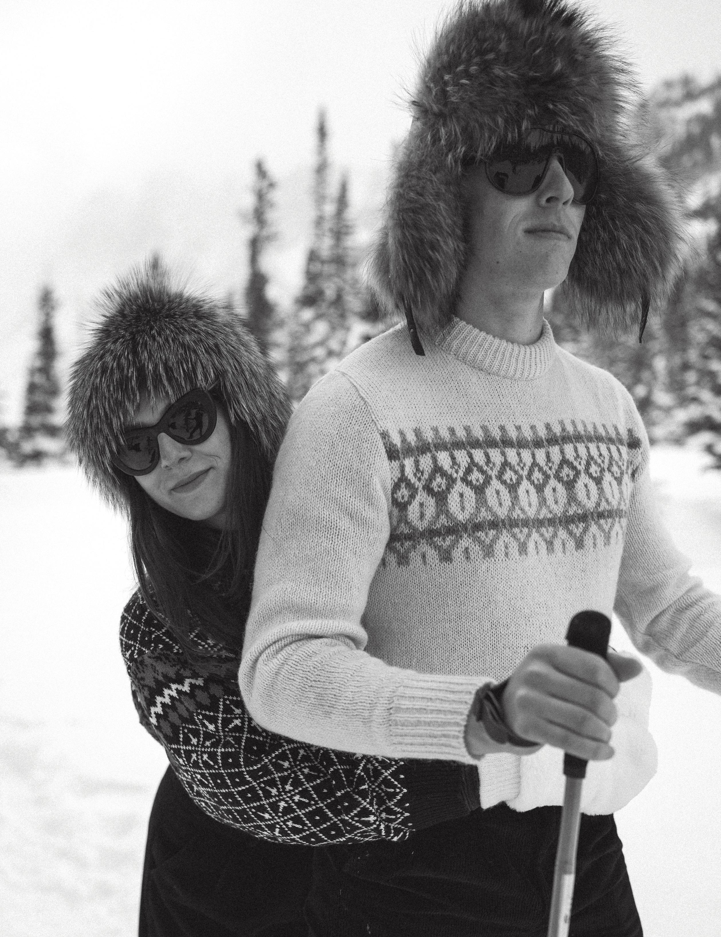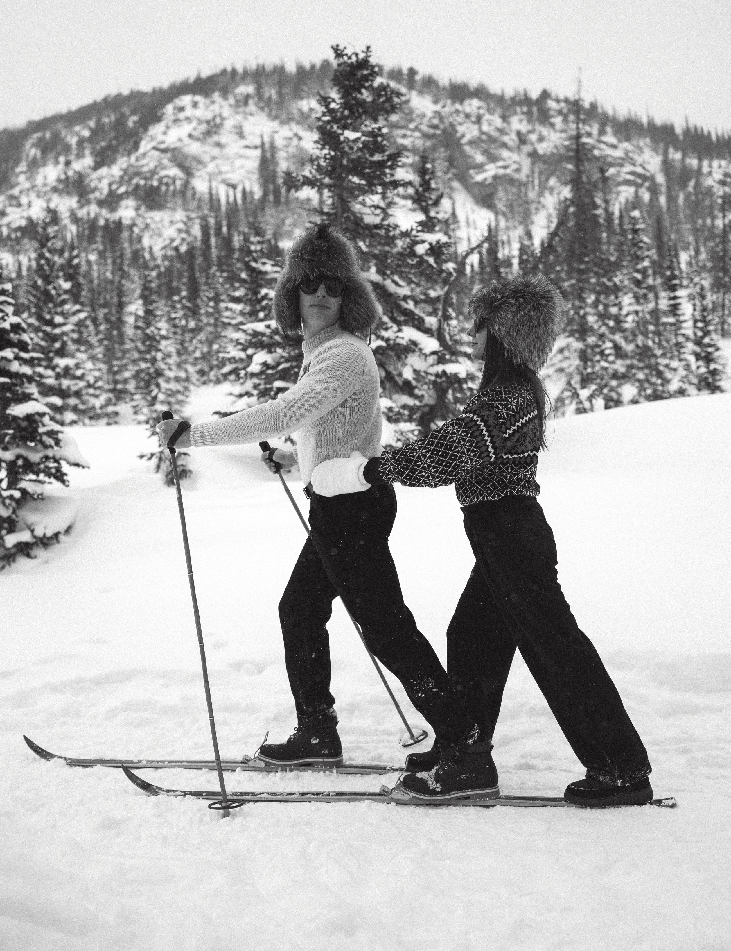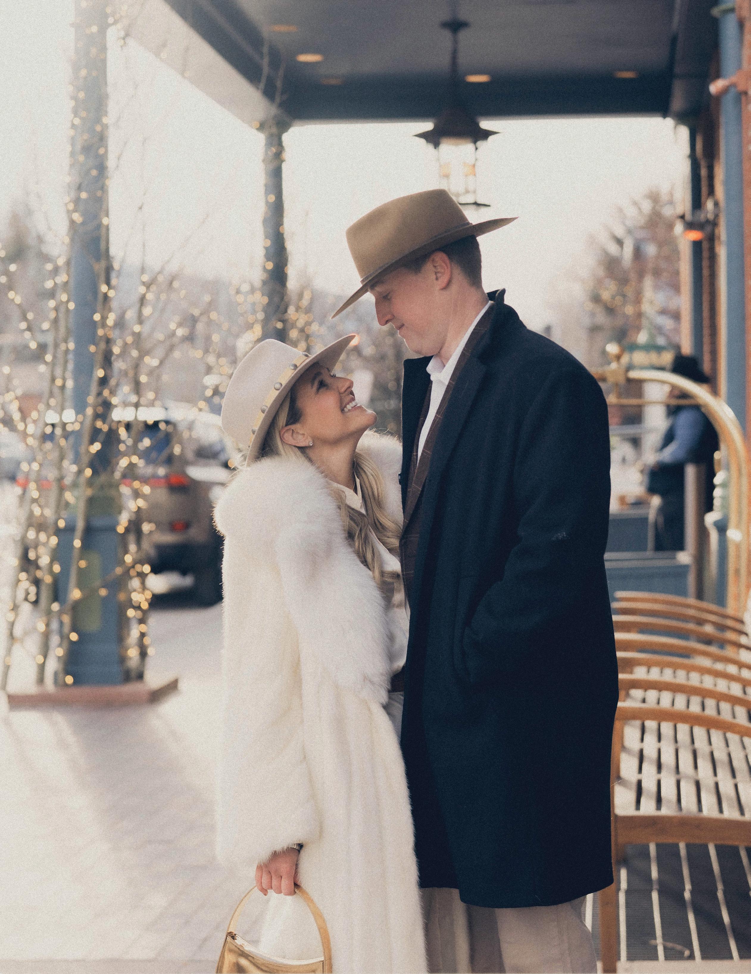 Camille and Evan met during their senior year at the University of Delaware. After five and a half years together, Evan planned a proposal on a snowy winter weekend. The couple checked into the A-Frame Club in Winter Park, a favorite getaway location since they had moved to Colorado. After dinner at the property’s cozy grill, they returned to their cabin with dessert and cocktails in hand. As snow gently fell outside, Evan asked Camille to spend forever with him. To celebrate, they chose to have their love story captured doing what they love most, skiing in the mountains. Dressed in thrifted vintage outfits styled by their photographer, Victoria Kait, they hit the slopes together for an unforgettable engagement session.