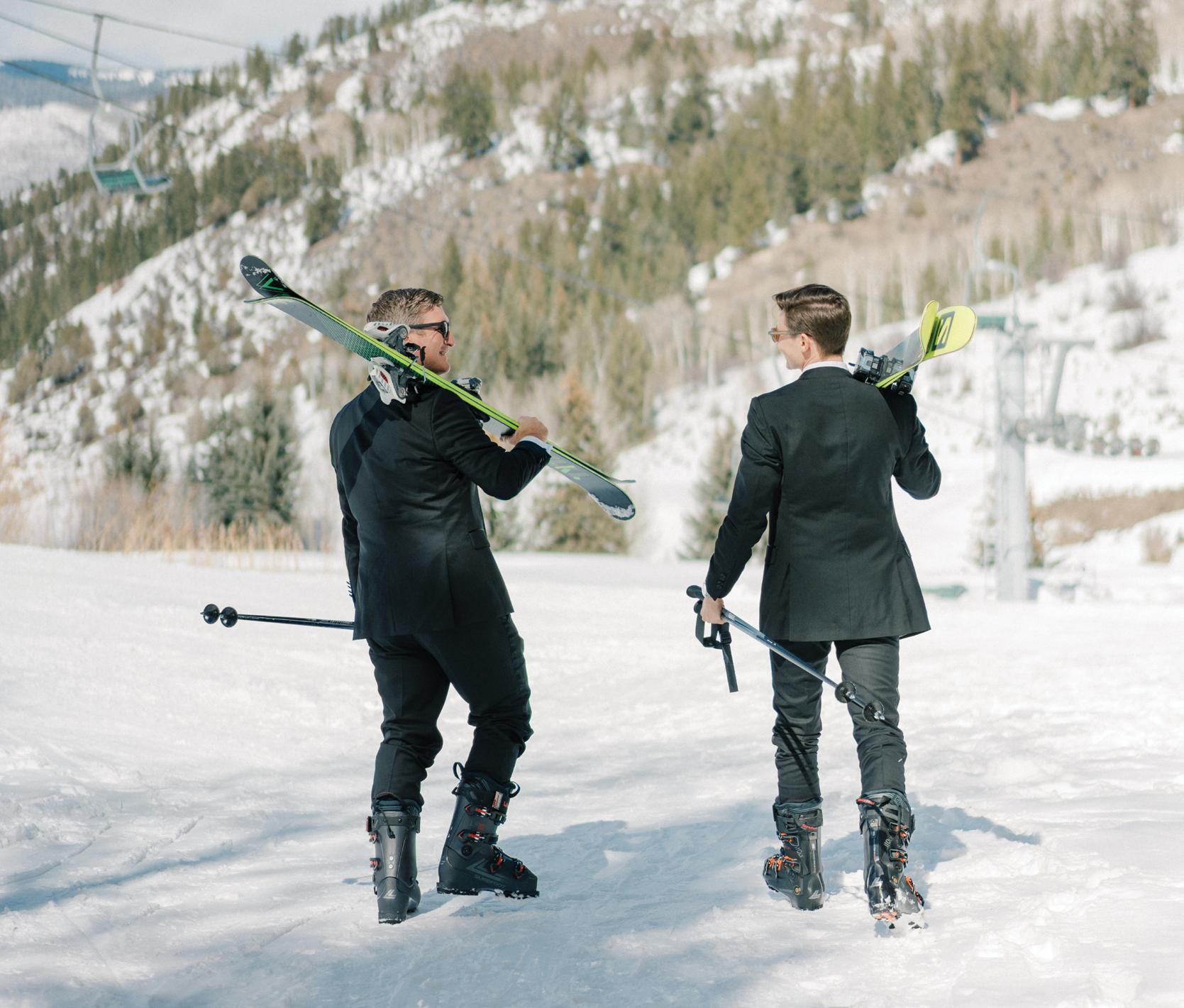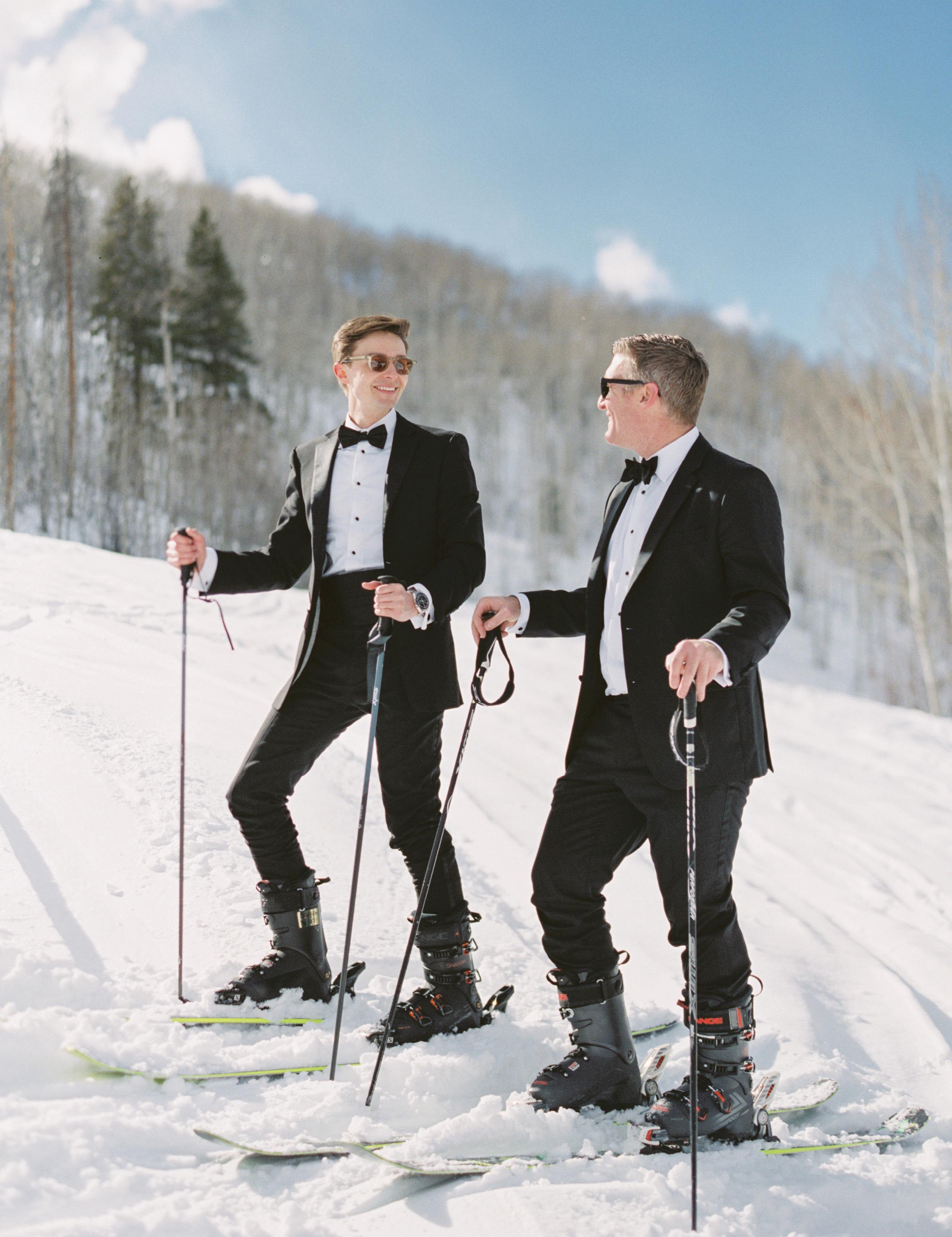 Beau and Billy first met when Beau was in town for a job interview. Even though he was just visiting, the pair decided to take a chance and go on a first date after matching on Bumble. “Neither of us knew then that one swipe would change our lives, but from that very first date, everything just clicked,” they shared. After seven years together, Billy planned a proposal that was unforgettable. Looking back on the moment, Beau shared, “After an amazing dinner at Splendido at the Chateau in Beaver Creek Village, we enjoyed cocktails in the lounge when fireworks started outside. We stepped onto the balcony to watch, and Billy suggested we move for a better view. Next thing I knew, he was down on one knee, ring, or rather, watch—in hand!” For their engagement session, Beau and Billy returned to the mountains that have long felt like a second home. With fresh snow underfoot and a crisp alpine breeze in the air, the couple skied through Beaver Creek, laughing and soaking up every moment all while photographer, Mary Ann Craddock documented the day.