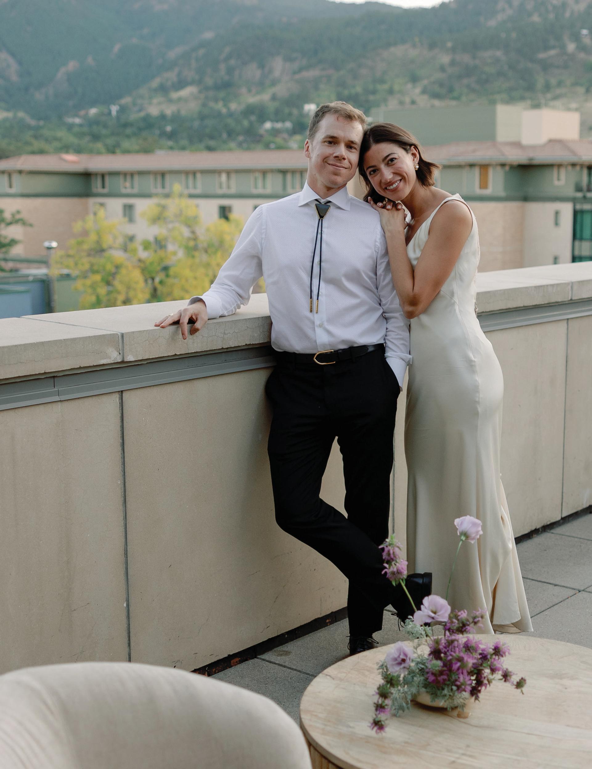 Seven years later, Brandon planned the ultimate Colorado proposal. The couple had purchased a home in Loveland with sweeping views of Rocky Mountain National Park, and from their backyard, they could see Longs Peak, a 14er they’d always talked about hiking. One crisp morning, they set out before sunrise and made the climb. At the summit, 14,259 feet above sea level, Brandon got down on one knee and asked Roxanne to spend the rest of her life with him. “He asked me where my favorite place in the world was, and I said, ‘At home with you,’” Roxanne shared. “That moment on the mountain felt like the perfect beginning to forever.”