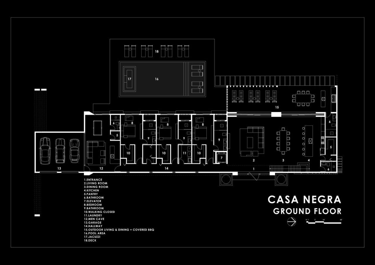 CASA NEGRA A TWO-STORY ULTRA-MODERN RESIDENCE FEATURING 7 BEDROOMS, 9 BATHROOMS, AND A CAR VAULT LOUNGE. THIS ARCHITECTURAL MASTERPIECE OPENS WITH A CUSTOM GRAND ENTRANCE THAT FLOWS INTO AN EXPANSIVE GREAT ROOM, SEAMLESSLY BLENDING SOPHISTICATION AND FUNCTIONALITY. AMENITIES INCLUDE A SPACIOUS KITCHEN WITH STATE-OF-THE-ART MIELE APPLIANCES, AND A FULLY EQUIPPED SUMMER KITCHEN FOR EFFORTLESS INDOOR-OUTDOOR ENTERTAINING. A LUXURY CAR GALLERY OFFERS A STUNNING SHOWCASE FOR PRIZED AUTOMOBILES, COMPLETING THIS RARE BLEND OF INNOVATIVE DESIGN AND REFINED LIVING.
