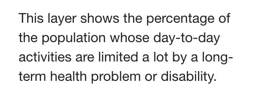 To identify the areas in which easy accessibility and a health conducive environment is important in response to individuals who are limited by a long-term health problem or disability.