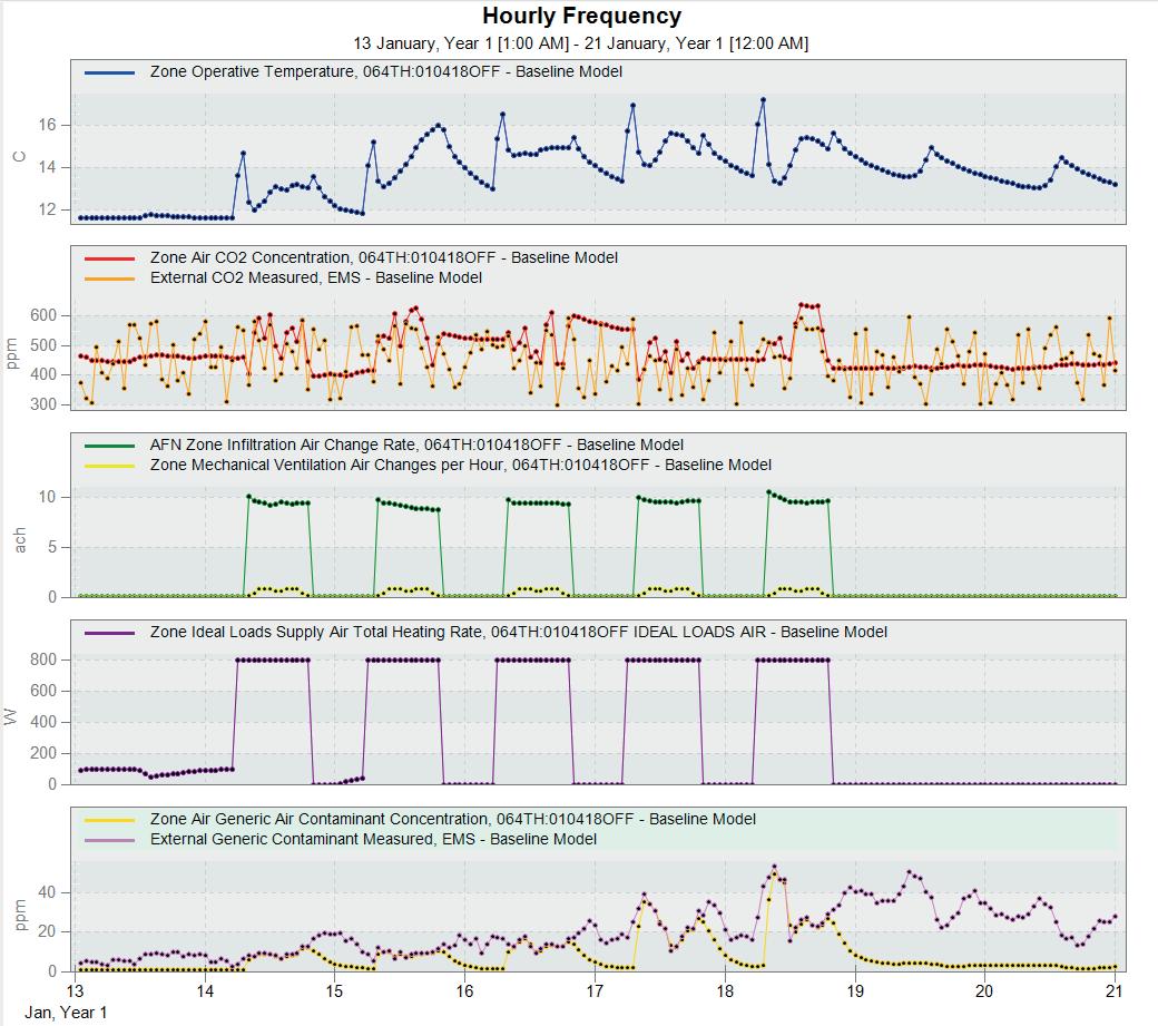 There are 3 fundamental strategies for improving indoor quality in buildings and retrospectively, enhancing the overall quality of a room, and these are: source control, ventilation for the dilution of pollutants and pollutant distribution and potential strategies of integrated or stand-alone filtration. In this case, as outlined prior, the explored intervention will be advanced demand control ventilation balancing CO2 against PM2.5 external pollution for room 418. As for Design builder, it is important to understand that any model will have uncertainty – and this will be driven by inherent calculations that are behind input parameters.