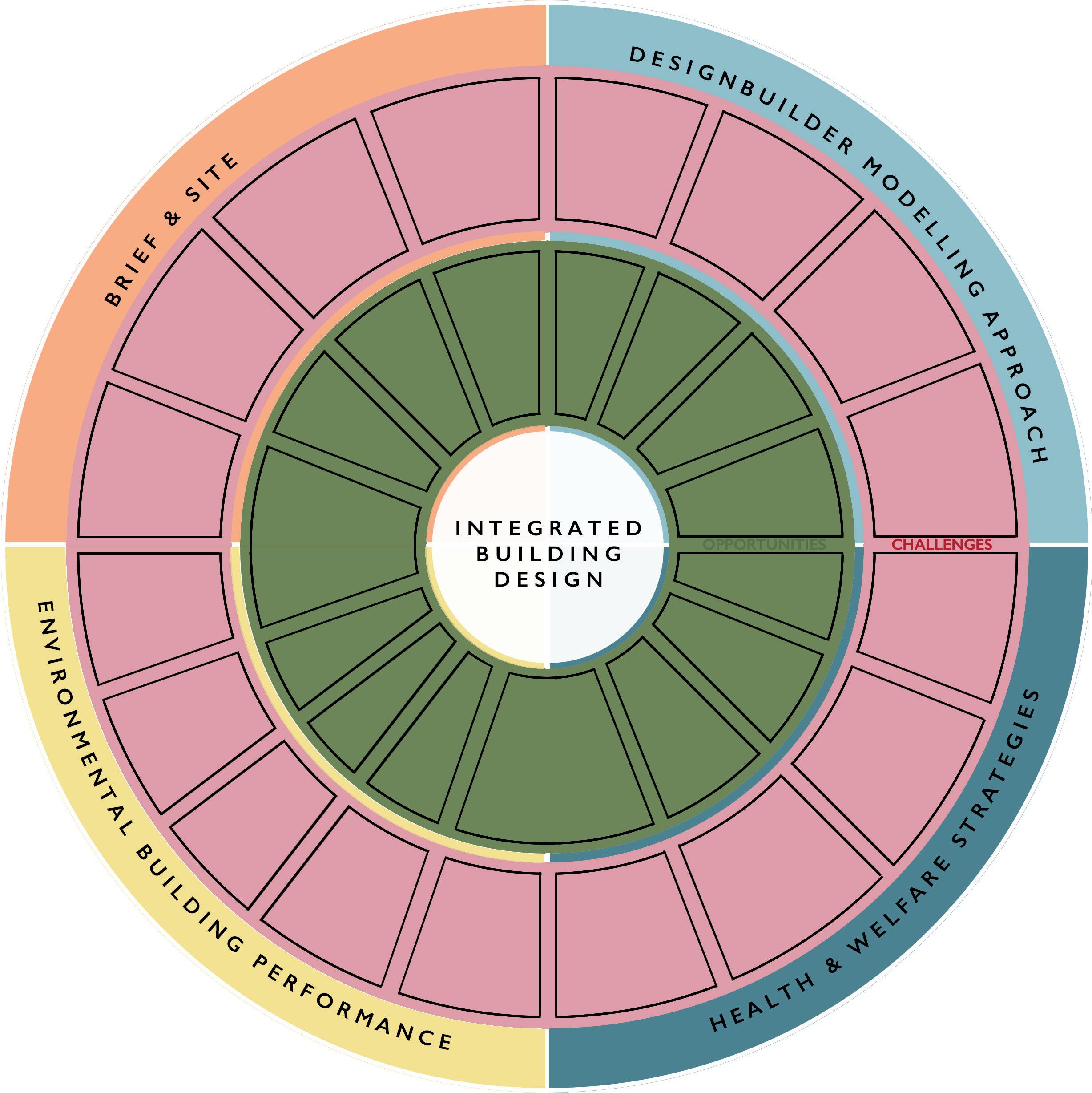 Ultimately, the route towards an integrated architectural, sustainability and wellbeing strategy arose with its independent and dependant opportunities and challenges, as illustrated in figure 2.3. Nevertheless, the final design came to realise the balance between these component parts and how they effectively build upon one another.