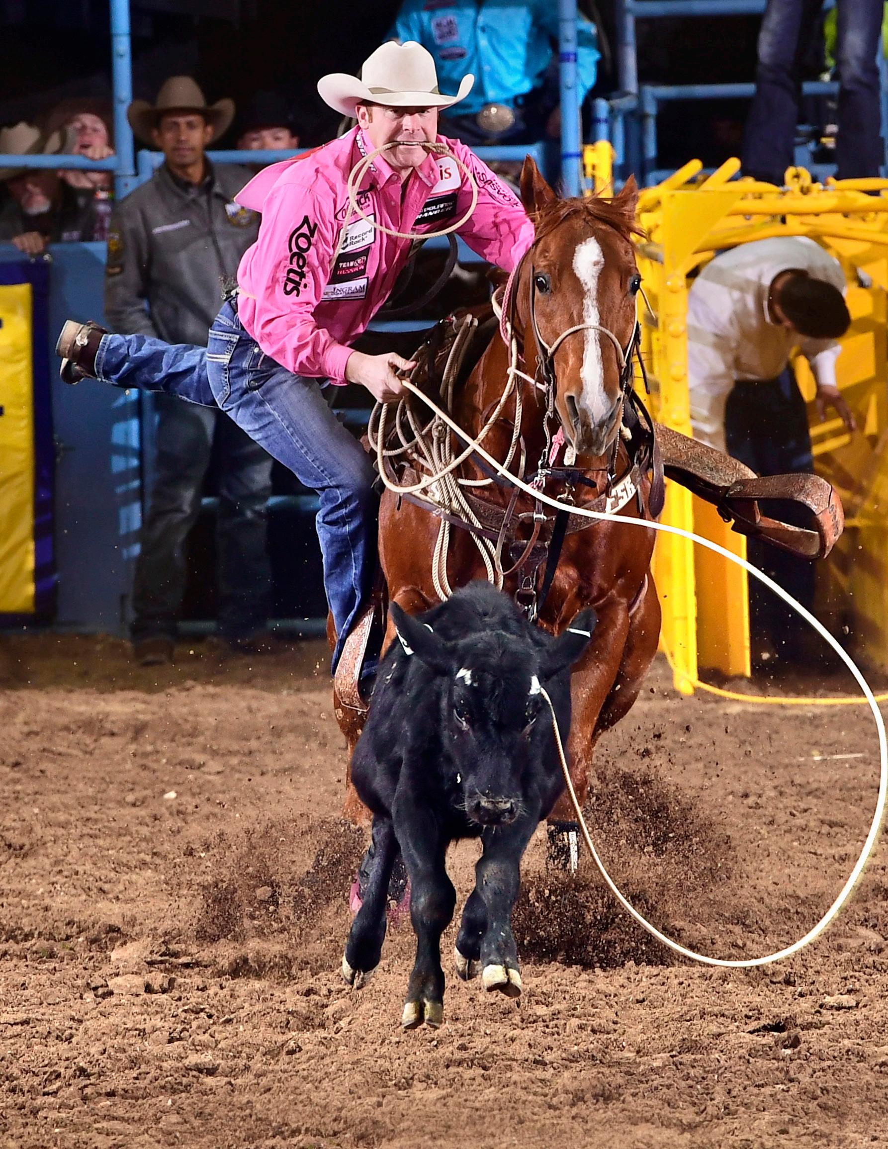 The first steer wrestler out of the gate on the first night, Reeves sealed the deal by winning the round. The $11,000 he pocketed in Dallas moved him from 17th to 14th and eliminated the chance for anyone to knock him out of the NFR. Getting a paycheck around the amount of $10,000 is an essential component of making the finals, Reeves said. ª