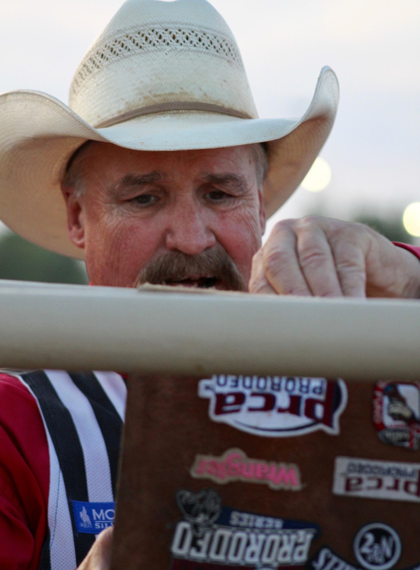 Benny Beutler walking chutes waiting for the rodeo to start at the Woodward Elks Rodeo in Woodward, OK.