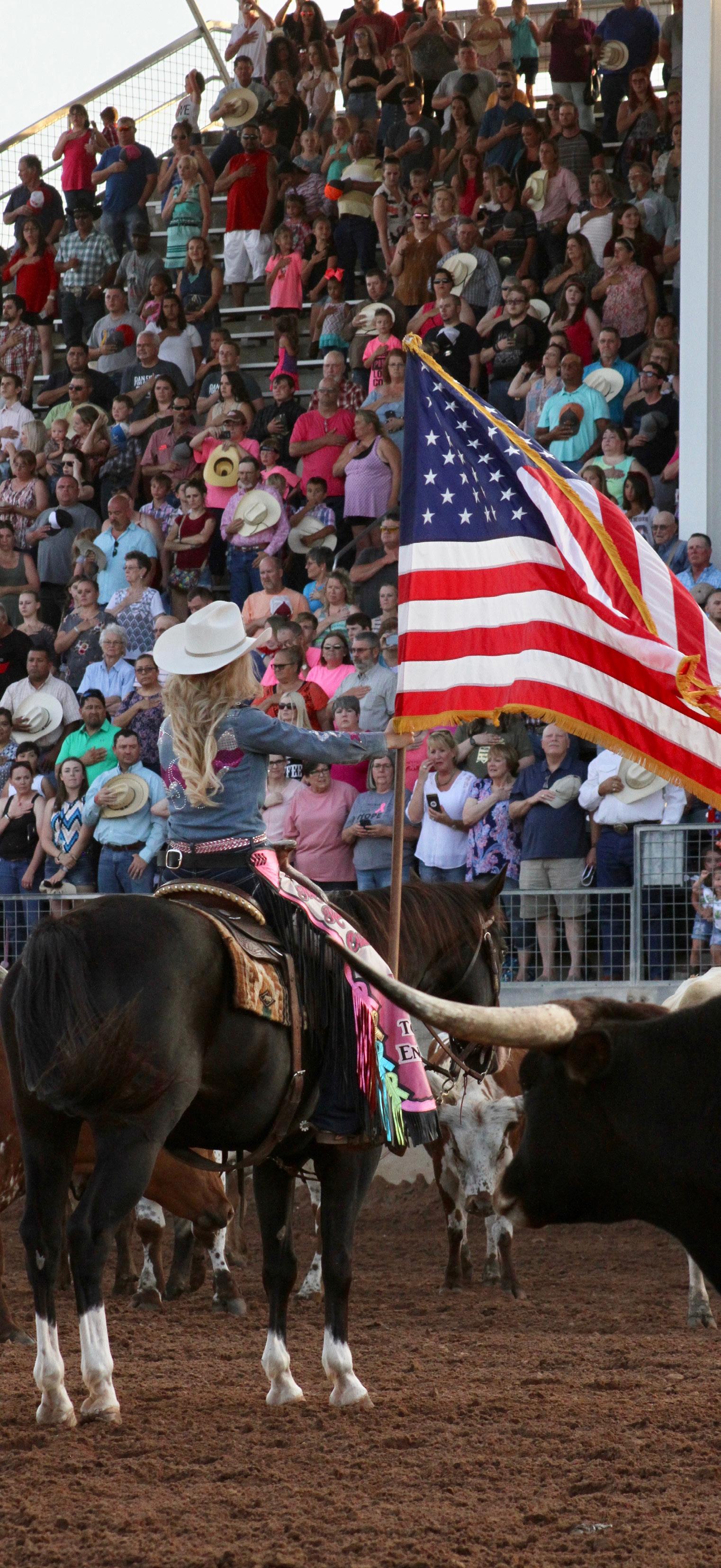 O Longhorns out of Woodward, OK at the Woodward Elks Rodeo in Woodward, OK. Photo by Annie Jo Gilbert of Roan Pony Productions.