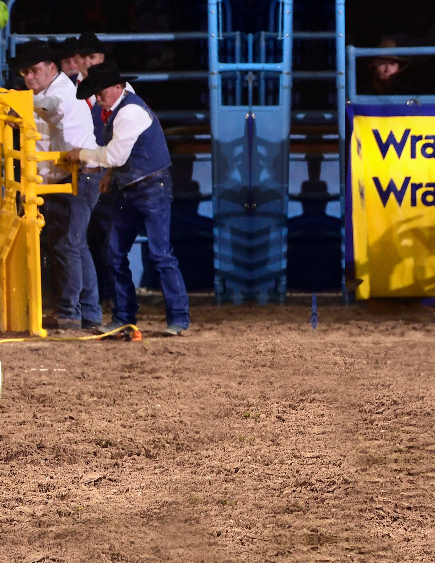 Held on the second floor of the convention center, the logistics of the JrNFR are truly a work of art. Dwayne Laduke, the man at the wheel, has heaps of experience that make the whole second-floor movement of cattle, horses and kids run smoothly.