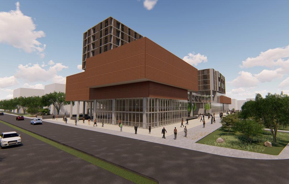 Primero se analiza como el terreno se comparta con su entorno, entender donde se encuentra y como respondera a el. Se tiene en cuneta que la esquina de la derecha es la que recibira a los usuarios. Luego de hace la distribucion del programa en el terreno. Asì mismo se hace un analisis sobre el asolamiento ya que se debe considerar el uso de paneles solares para generar la electricidad en el proyecto. Se debe tener en cuenta que en esa zona de Texas existe una gran precipitacion es por ello que se considerará un sistema de recojo de lluvias.