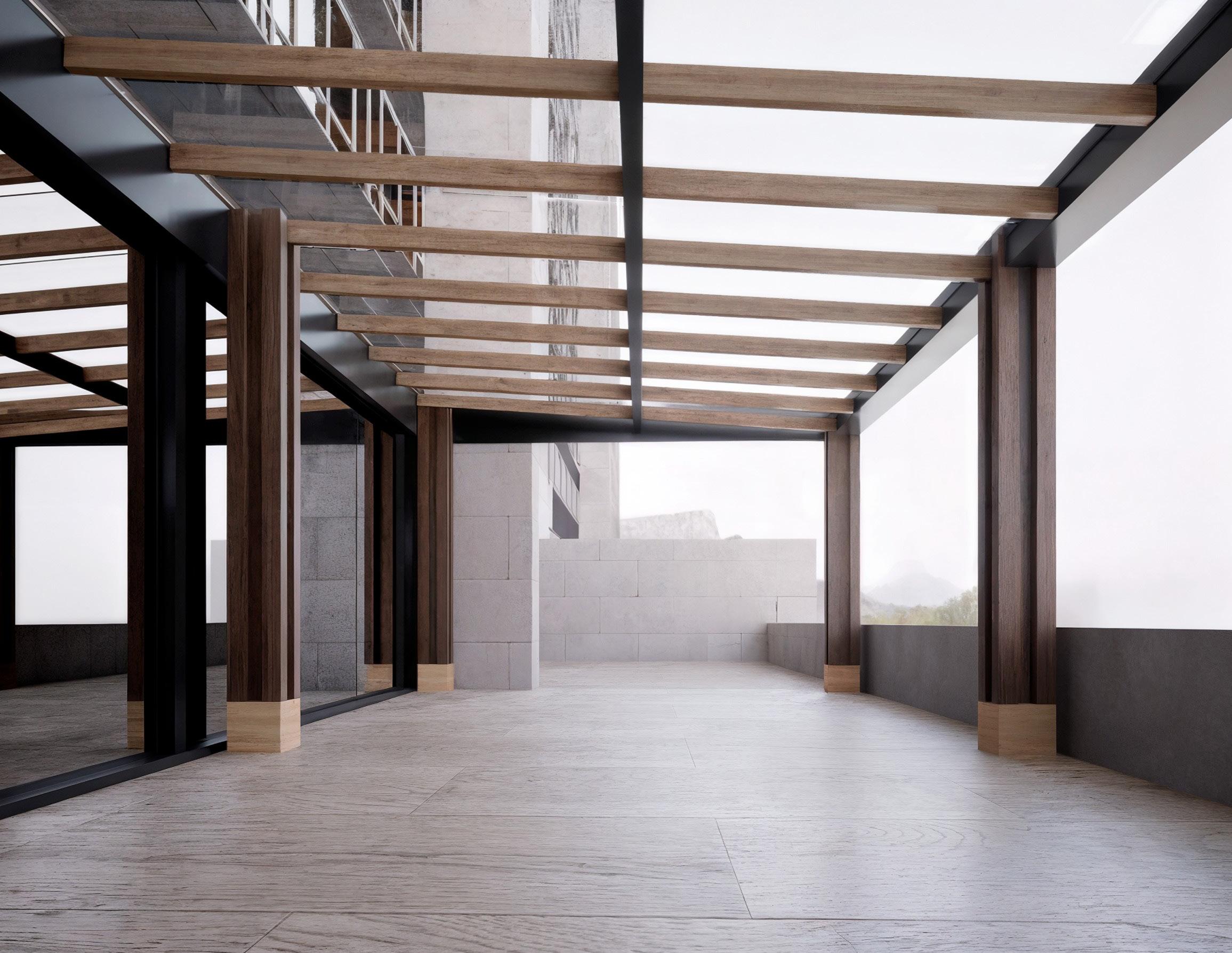 Diseño de iluminación con luminarias empotradas tipo spot modelo TL-2911N Illux , distribuidas a lo largo de la pérgola para lograr un acento lineal y puntual. Cada unidad cuenta con foco LED GU10 de 2700K y 500 lúmenes, operando a 120V con consumo de 10W. La disposición regular de las luminarias (L-01) refuerza la lectura rítmica de la estructura y aporta una iluminación cálida y controlada sobre el espacio.